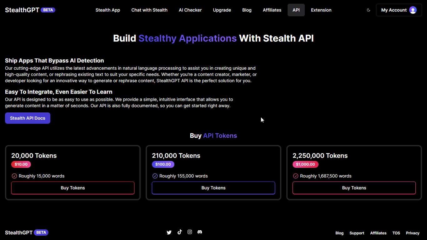 StealthGPT's API isn't only compatible with websites. It can be integrated with mobile apps and social media platforms. This provides an opportunity for your audience to have the best experience interacting with you or your brand. Good experiences encourage users to keep engaging with your content.