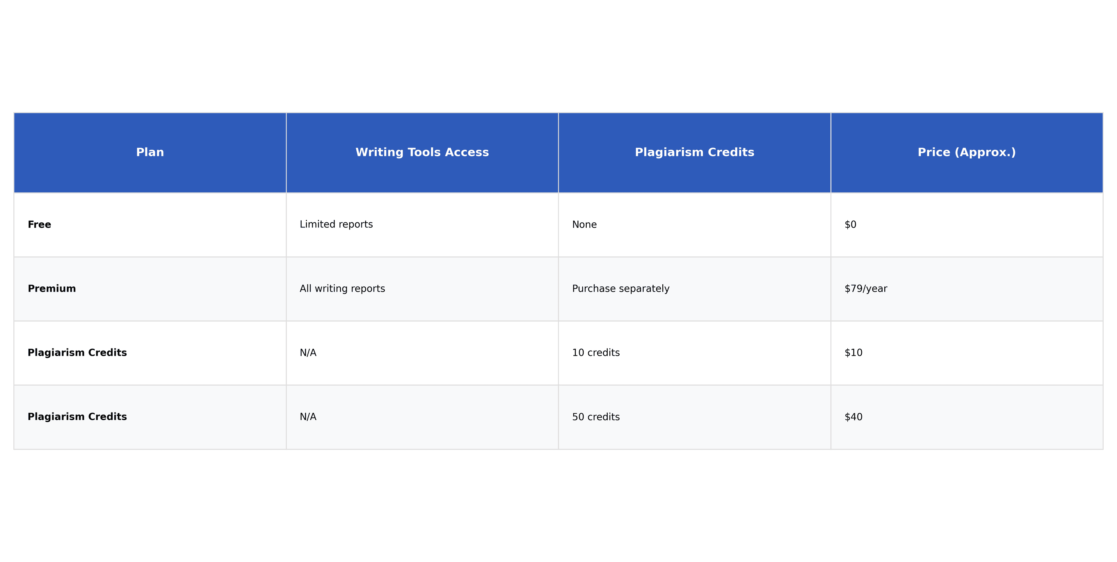 * Credit-Based Plagiarism: Purchase plagiarism checks only when needed rather than paying for unused monthly allowances.