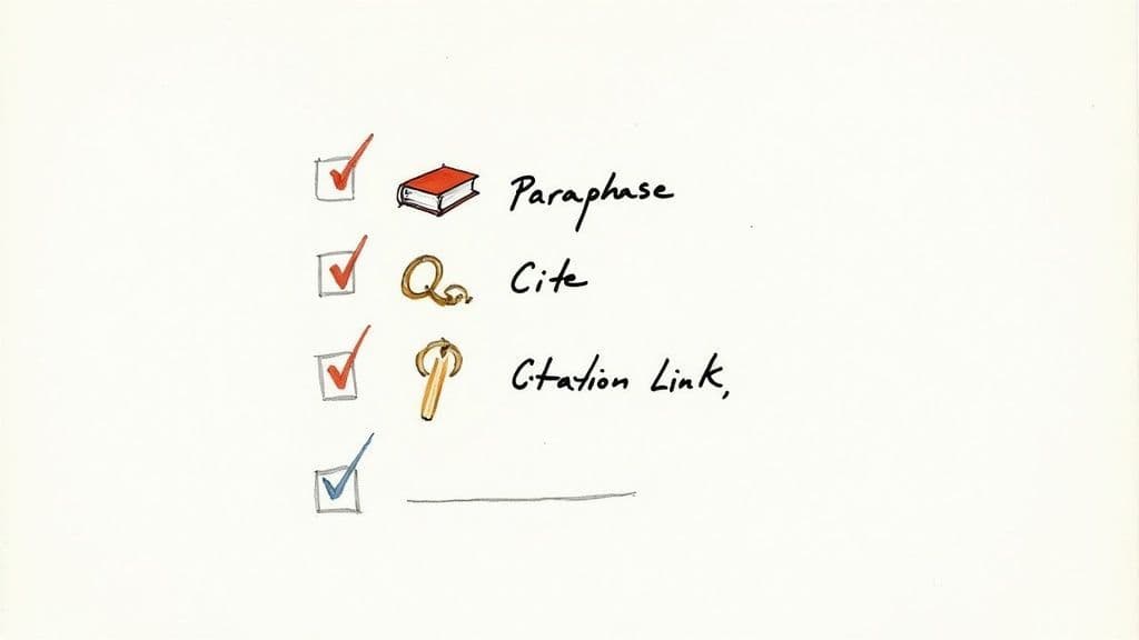 Your best weapon against a high similarity score is mastering the art of paraphrasing. And I don't mean just swapping out a few words for synonyms. That old trick is called "patchwriting," and modern plagiarism checkers see right through it.