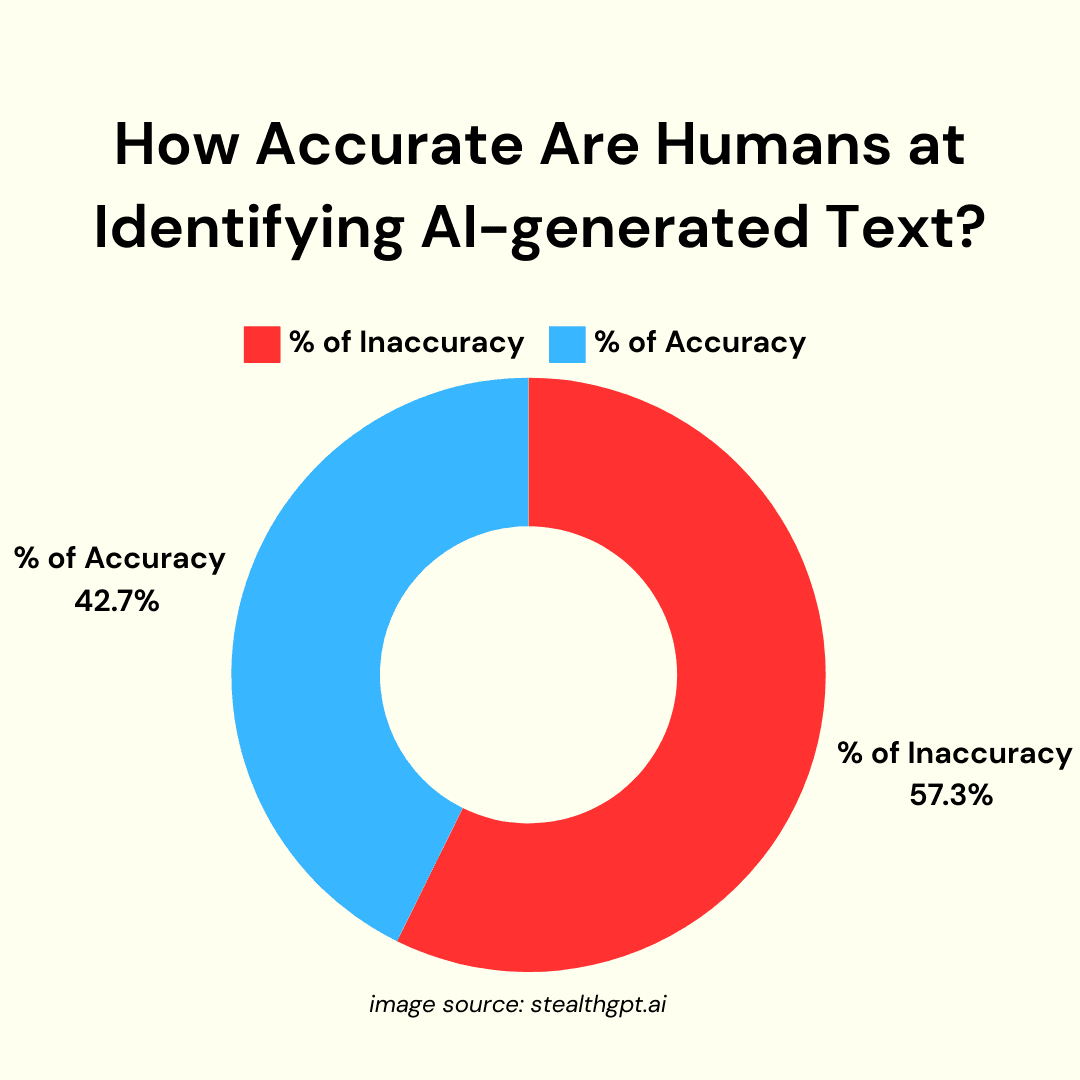 Also, content marketers are capitalizing on the speed of generative AI apps for large-scale content generation. Considering the distinctive writing style of LLms, one would think that humans would have become excellent at identifying AI-generated content.