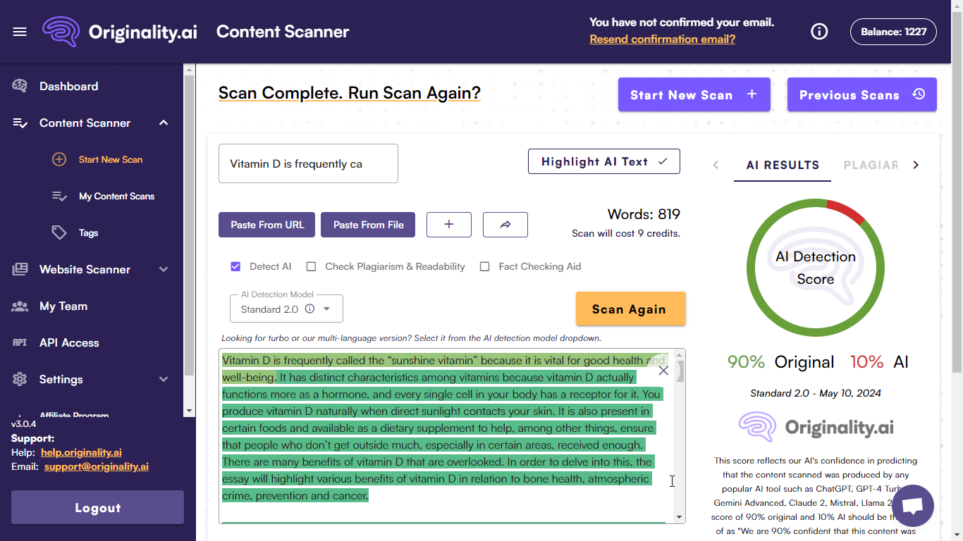Consequently, you can't tell if a work was plagiarized by scanning it with an AI detector. You need to assess the text using a plagiarism detection tool to know if any part is plagiarized.