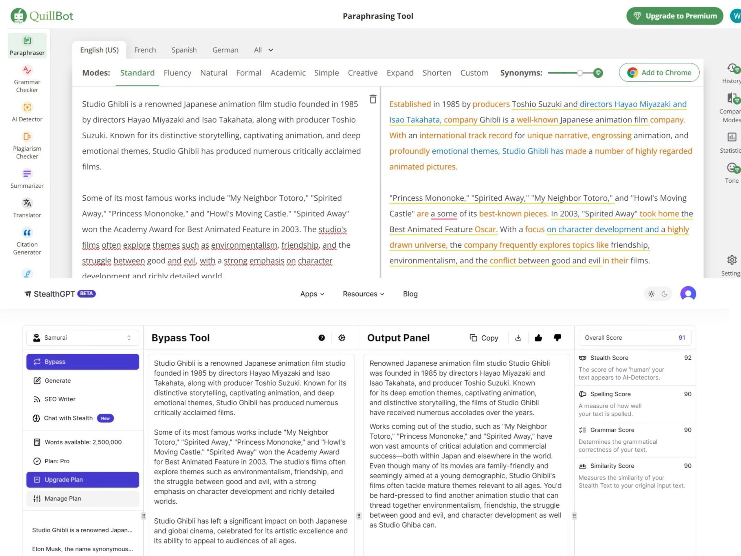 So, in this case, we pick Quillbot, known as the best and famous paraphrasing tool among users, and StealthGPT, as a presenter for the best undetectable AI service in the market, as a side-by-side comparison for this test.