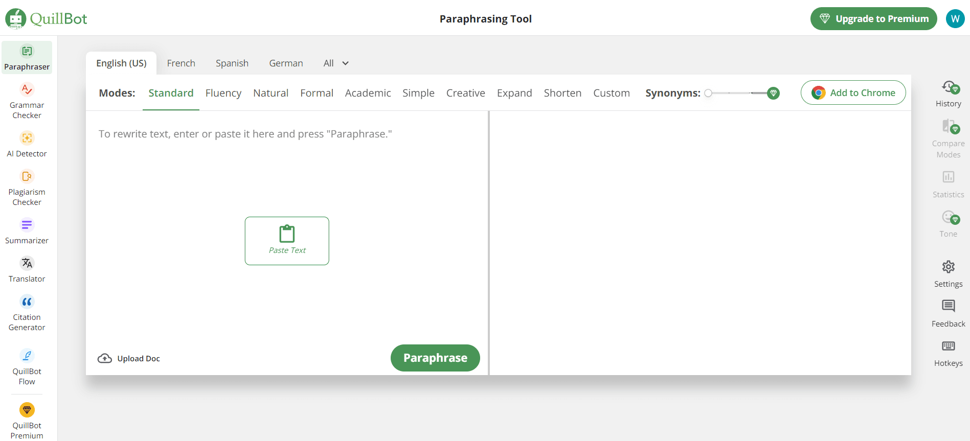 Multiple paraphrasing modes: Simple, Standard, Fluency, Creative, Shorten, Extend, Formal, Academic, Custom, and Natural