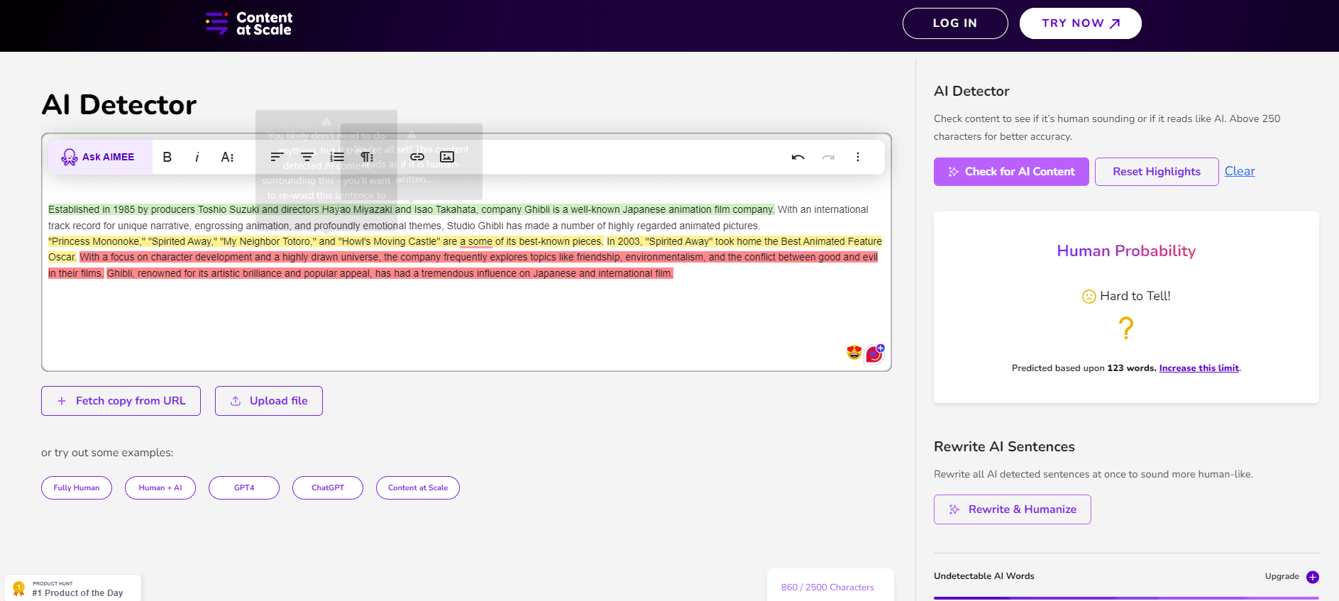 Ready to see if the paraphrased content can actually bypass AI detectors? Feel free to check out the test results below.
