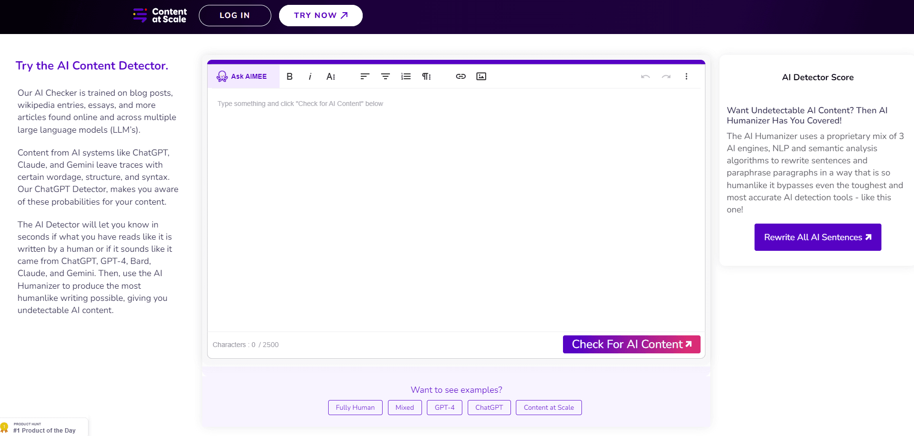 AI Detect is a cutting-edge tool in the AI content detection landscape, boasting a remarkable 99% accuracy rate in identifying AI-generated text from platforms like ChatGPT, Google Gemini, Clause Opus, and Meta LLaMa. Despite being new to the market, it has quickly garnered a substantial user base that trusts its efficacy. This widespread adoption speaks to its ability to effectively distinguish between human and machine-generated content, offering a reliable solution for those seeking to ensure the authenticity of their digital content.