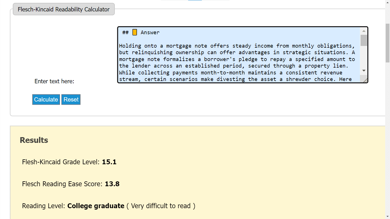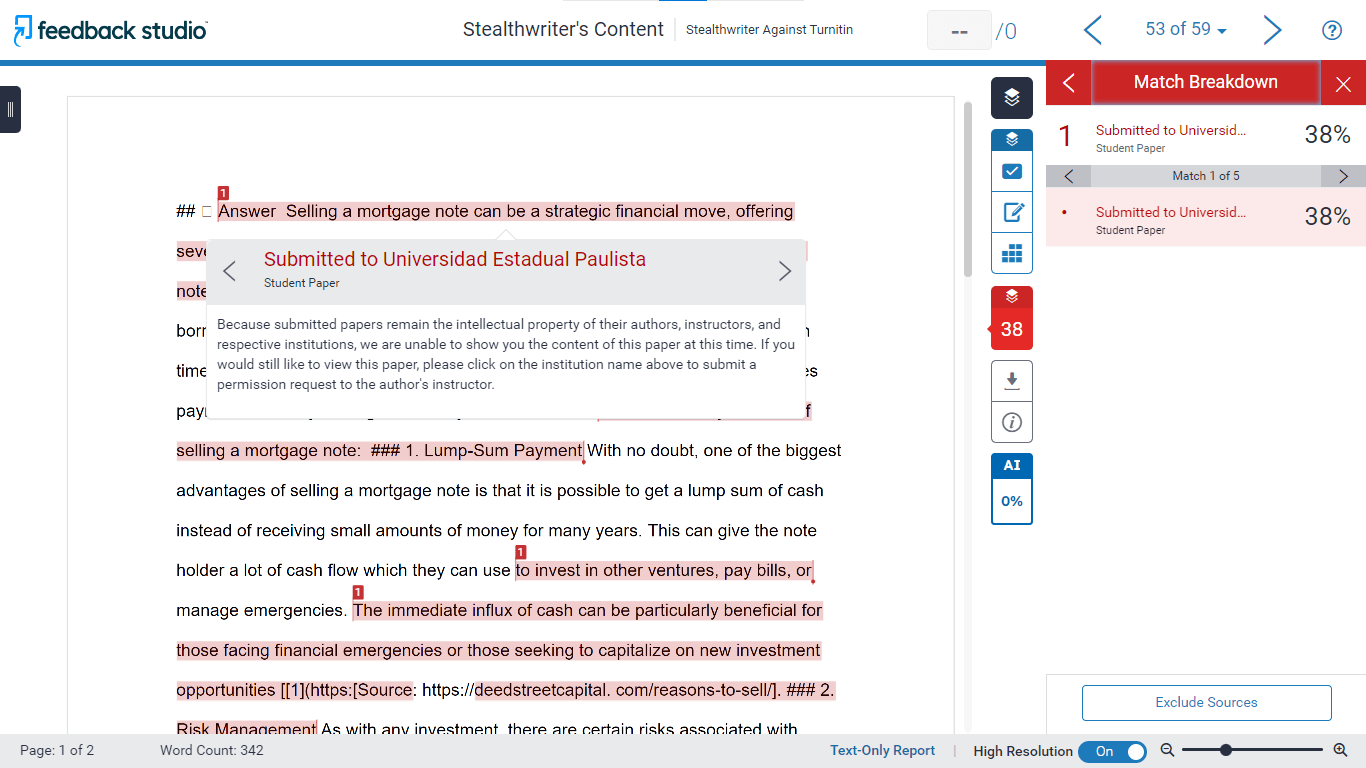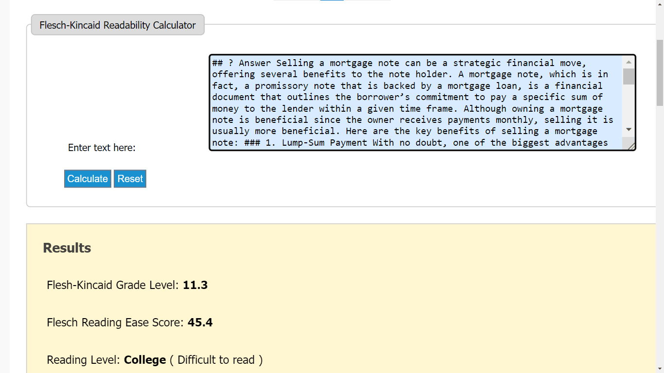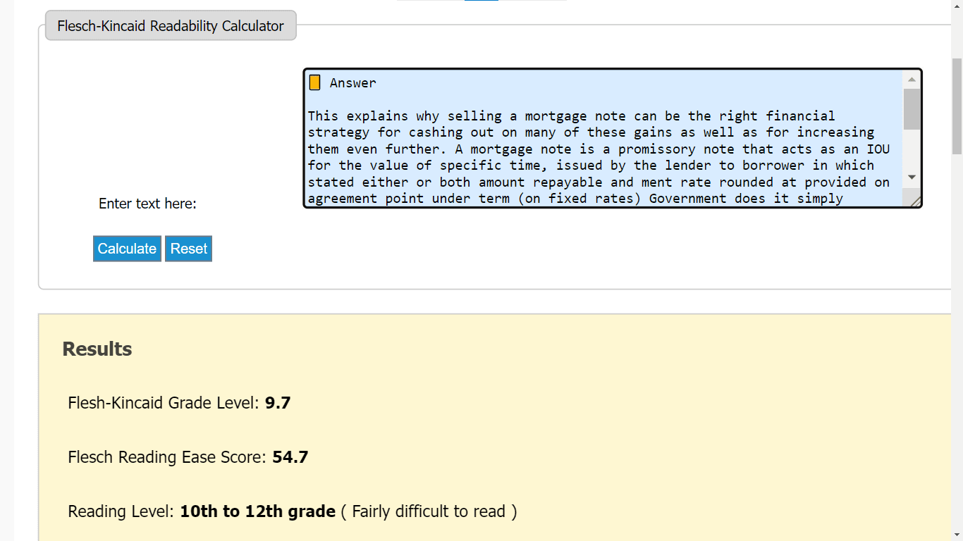 Stealthwriter's text scored 45.4 and was categorized as fairly difficult to read. This implies that reading the actual content can be incoherent and difficult to understand.