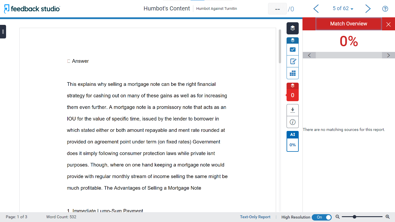 Below is a screenshot showing the result of Turnitin's scan of Humbot's content.