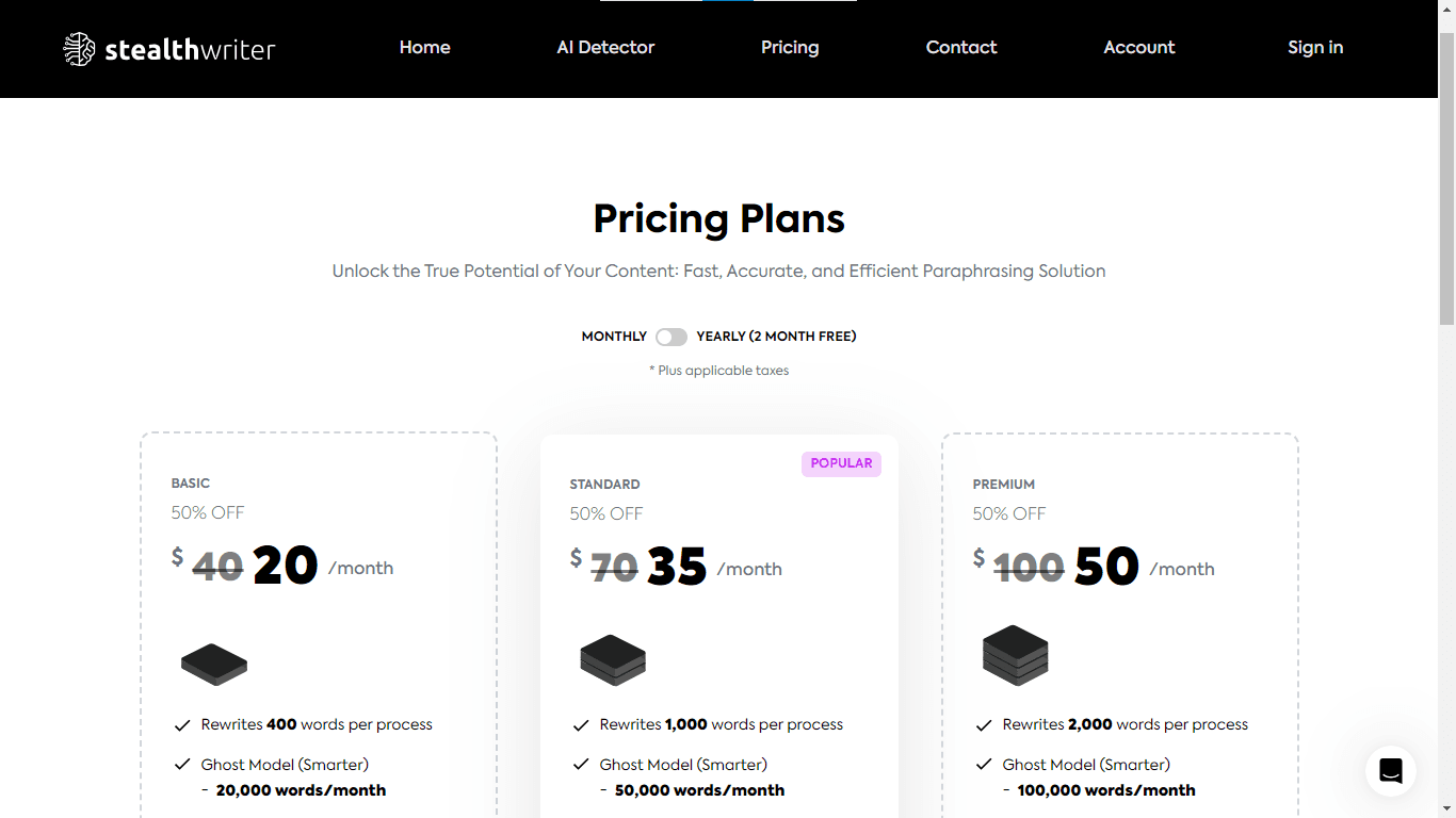 Stealthwriter has a free plan that lets you humanize 300 words per time. To humanize more words at once, upgrade your account to one of its paid plans.