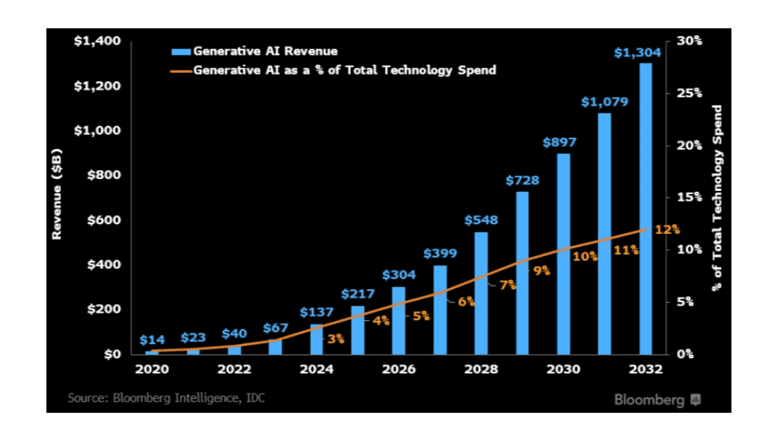 Tech spending to fuel the AI revolution might just be the supply-side growth recipe the Fed needs to stick a soft landing and prevent a recession. Economists speculate AI becoming into a 1.3 trillion dollar sector by 2032, and with investors hopping on countless generative AI startup bandwagons, we've only begun to see the boom.