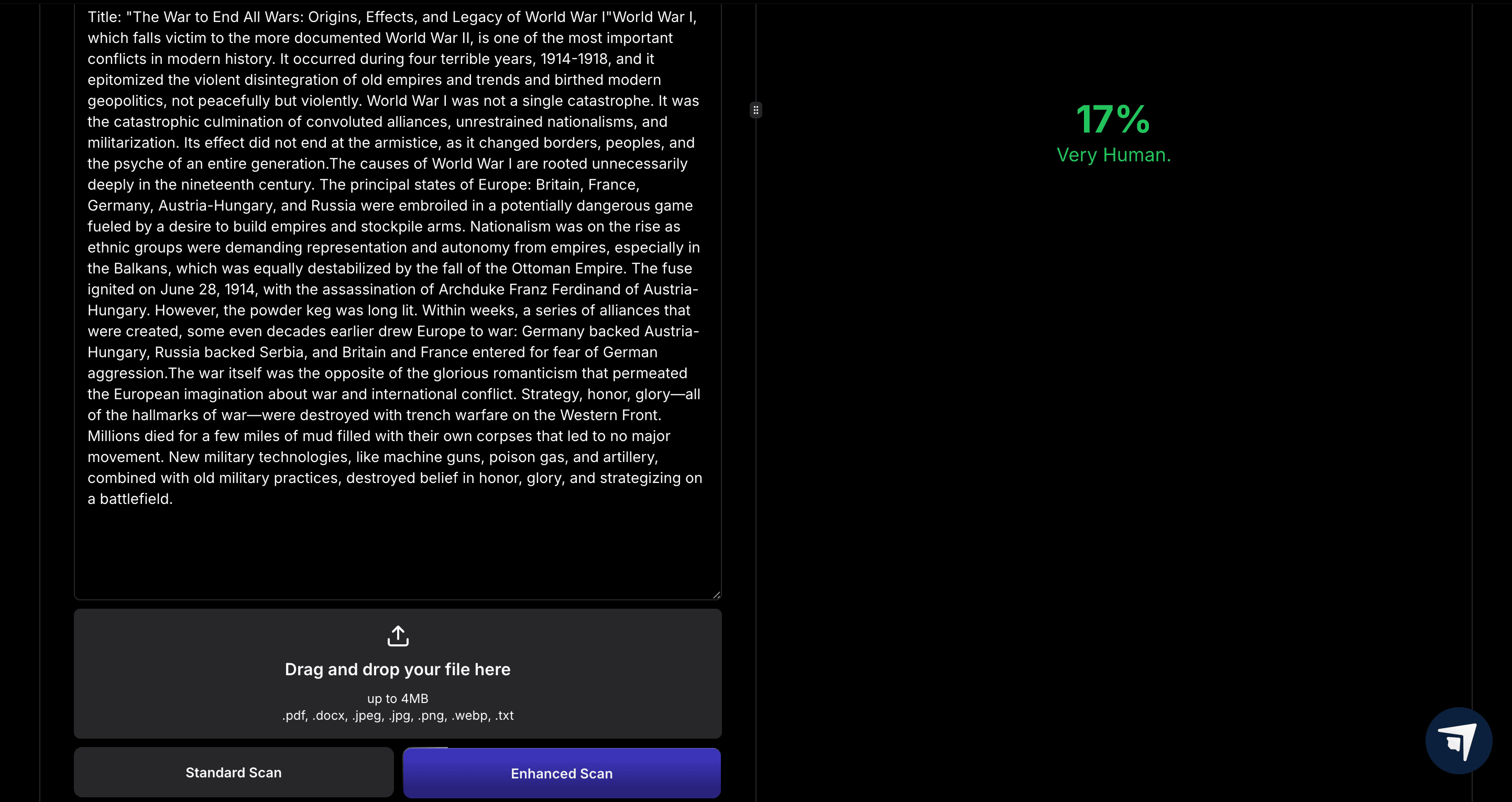 Now I'm going to put this software through a real test, StealthGPT's AI detector. Using both enhanced AI detection and standard, we will be able to decipher whether this text will pass our smell test and Turnitin's.