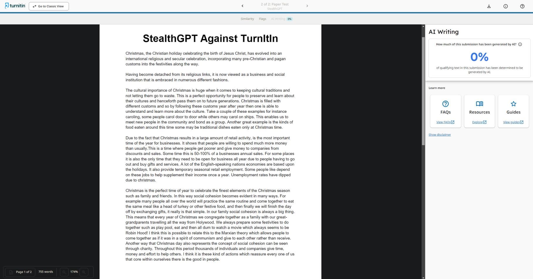 Okay hold on now... StealthGPT is achieving 0% AI detection score from GPTZero and Originality? Let's not get too excited and see how it performs against TurnItIn.