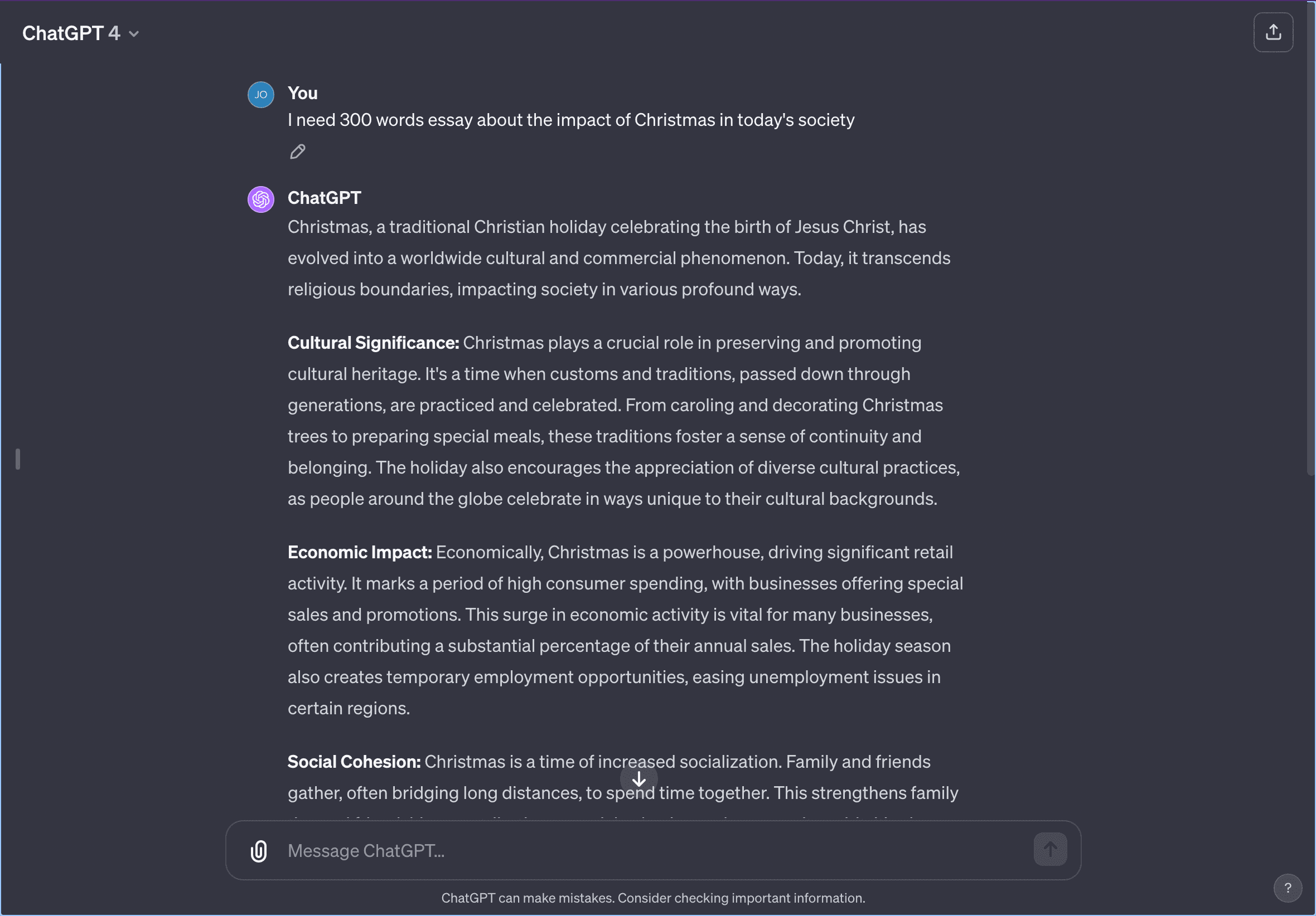 Firstly, let's come up with a text written by ChatGPT. Here's the prompt that we will be using for the experiment.