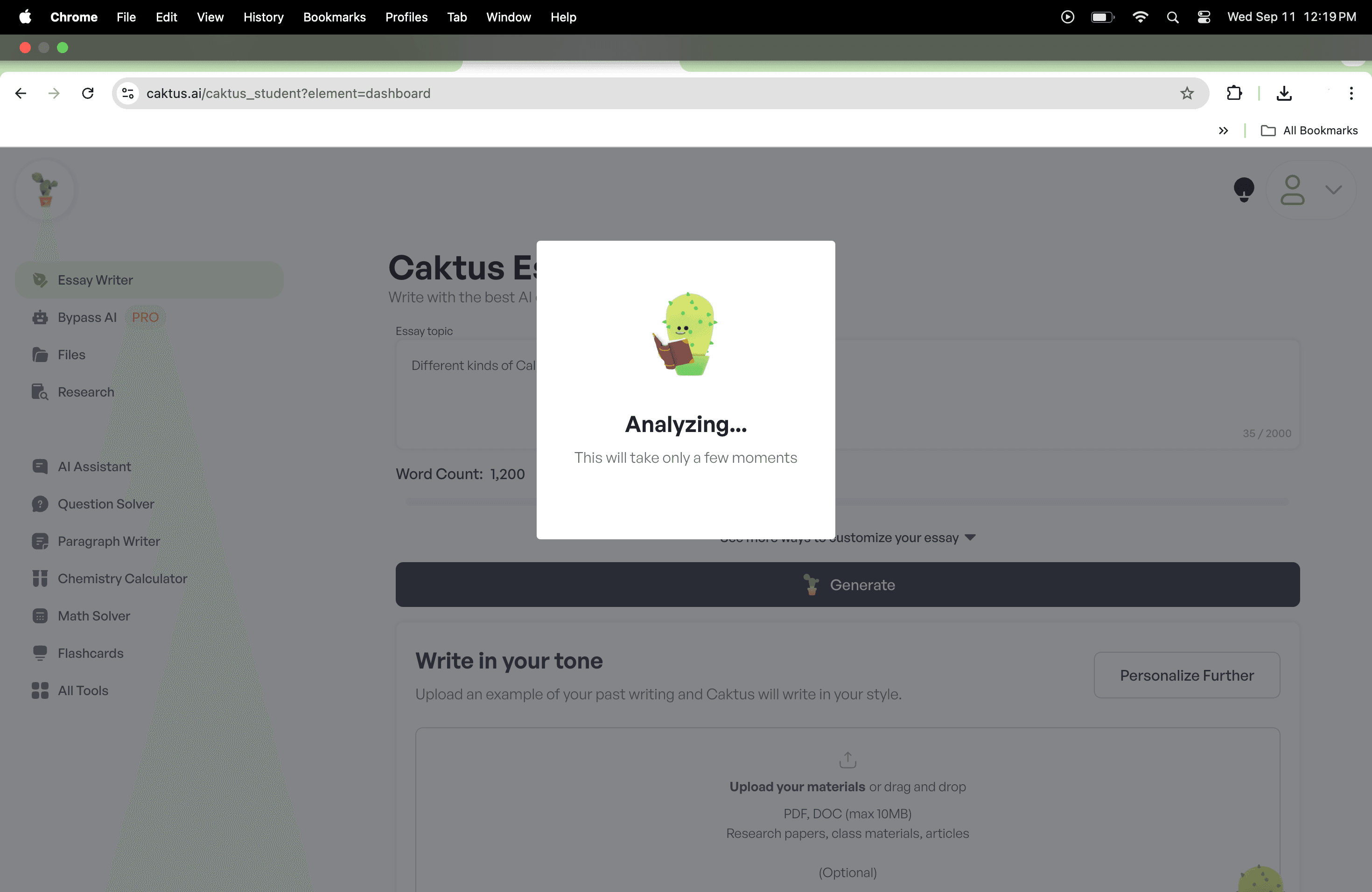 I waited and waited. Caktus took forever to analyze my prompt and generate an essay. So long I thought the software was bugged. So long that I had to restart it twice. So long that it was clear that they did not want me to use their free service at all.