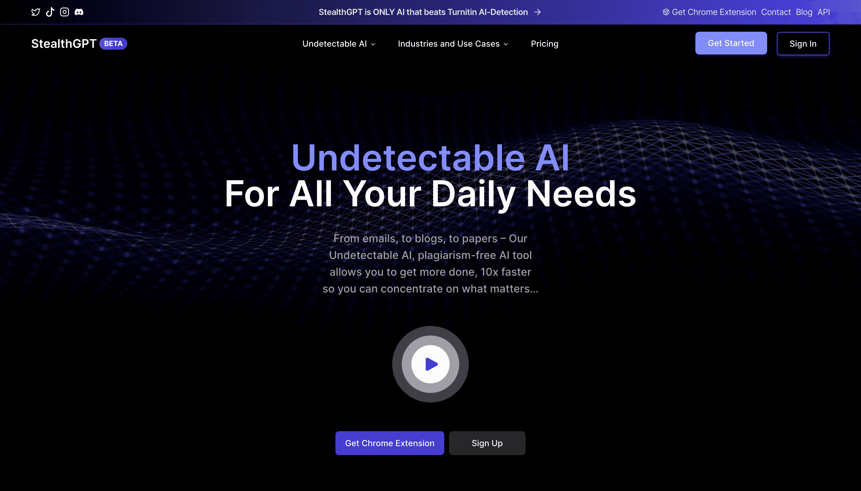 StealthGPT is the best Undetectable AI website out there, beating major AI detectors such as GPTZero, Originality, and TurnItIn. If you are a highschool or college student looking for the best AI humanizer tool in the market then look no further. It's simple, easy to use, and there's plenty of evidence you need to give you the assurance of staying undetected. Try StealthGPT out today!