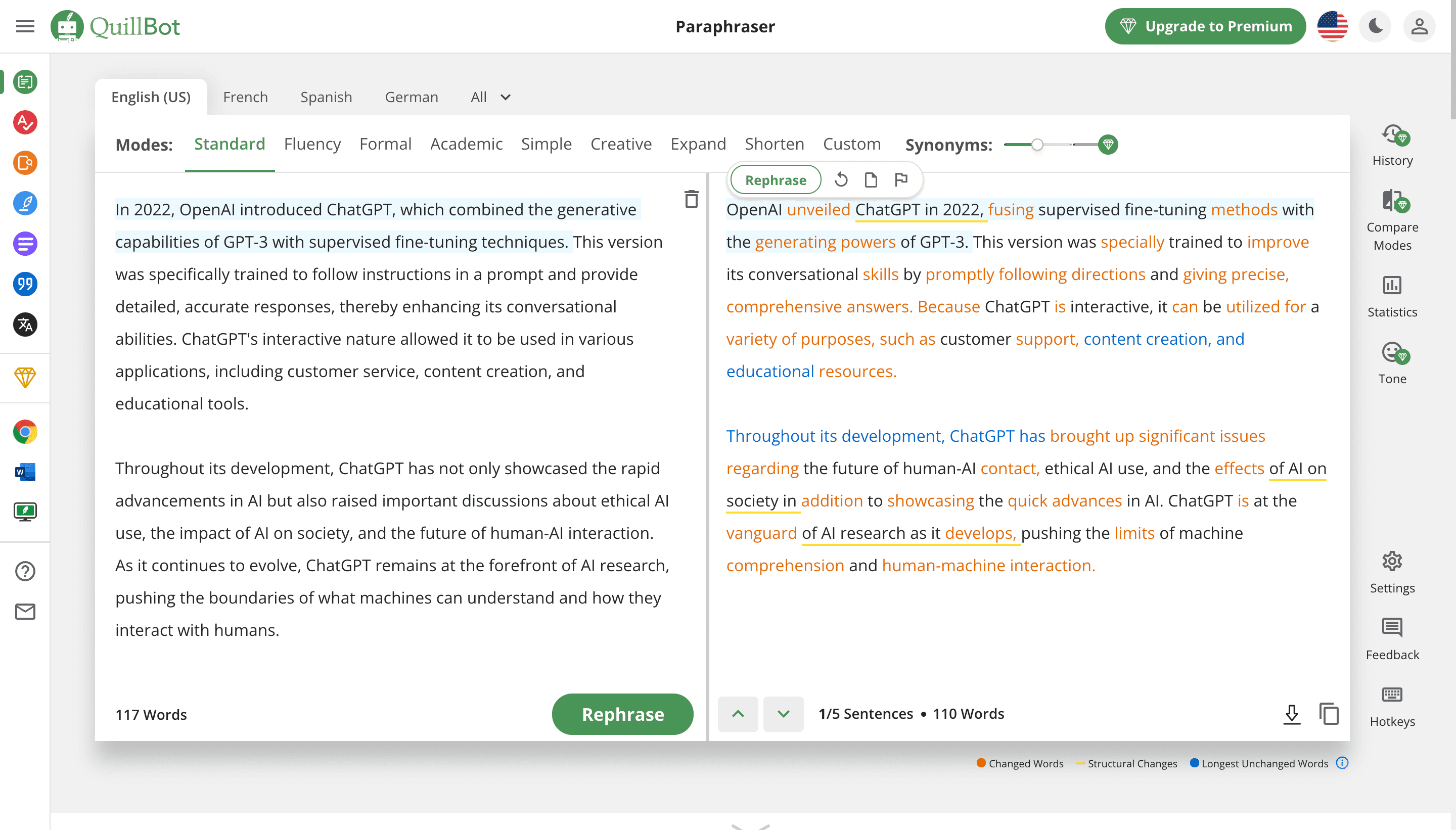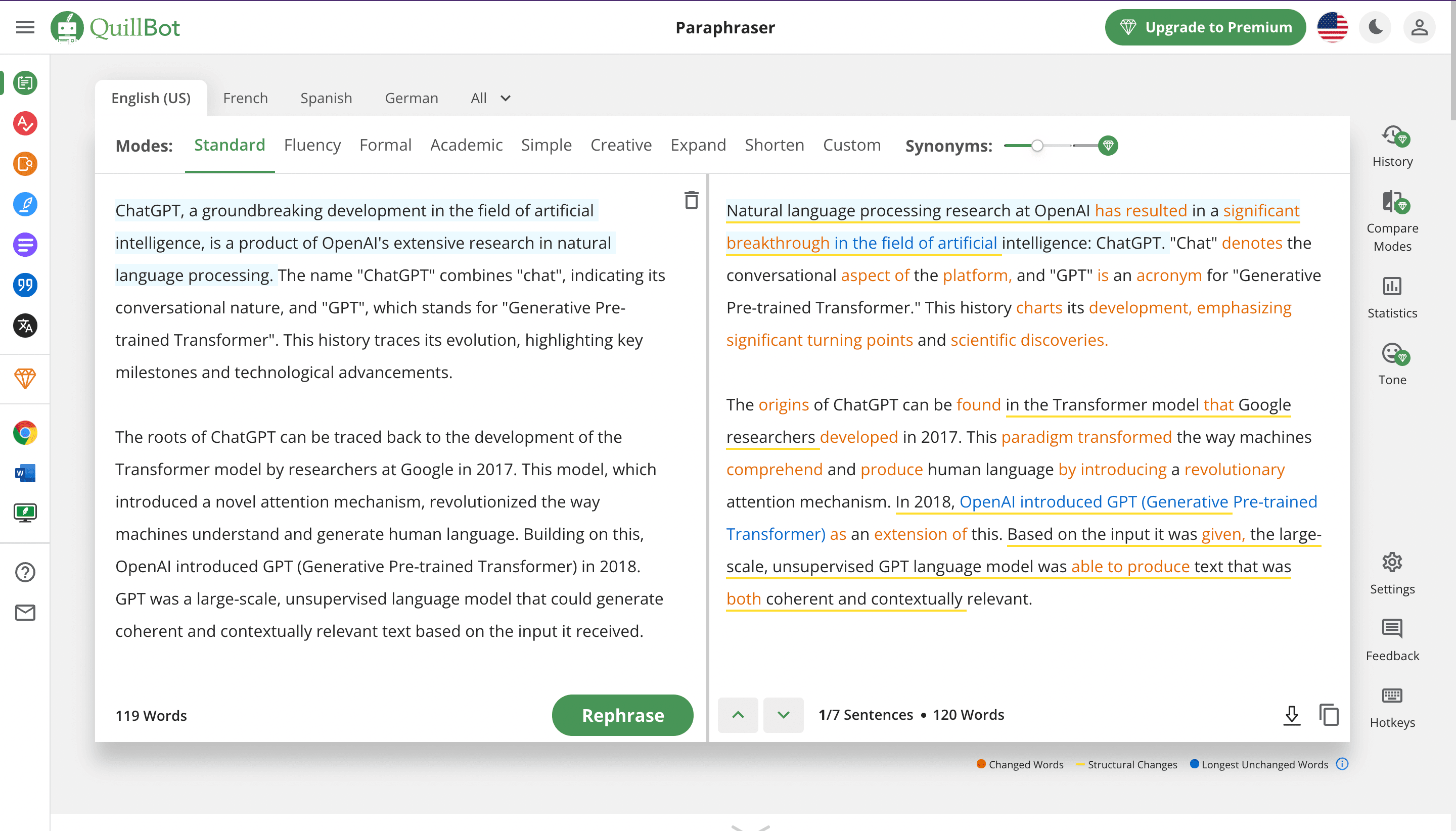Let's copy this text from ChatGPT and use Quillbot’s paraphraser tool for the experiment.