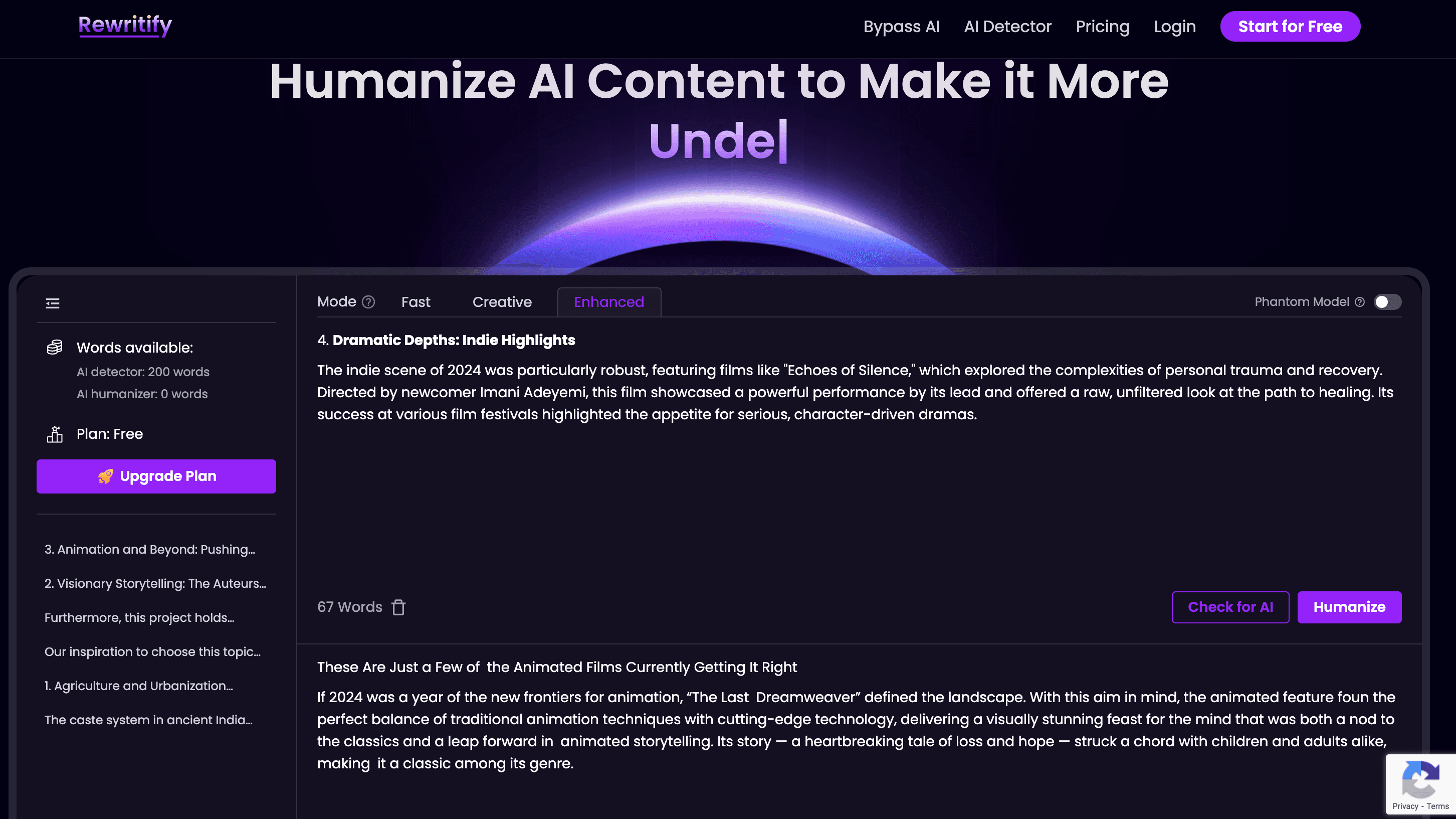 Does rewritify give users decent undetectable AI content? Will it humanize AI text into high-quality writing that can bypass AI detection systems like Turnitin, Originality.AI, Copyleaks, ZeroGPT, GPTZero, and StealthGPT’s newest Enhanced AI Detector?