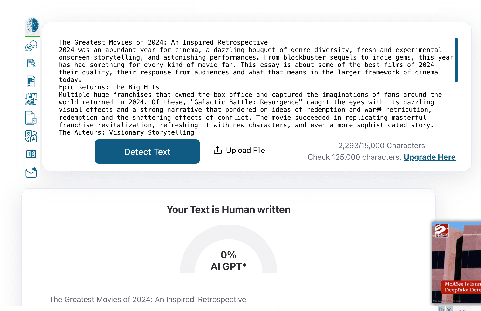 Not well. Rewritify scored a 100% AI score, it’s as if the text wasn’t really humanized at all.