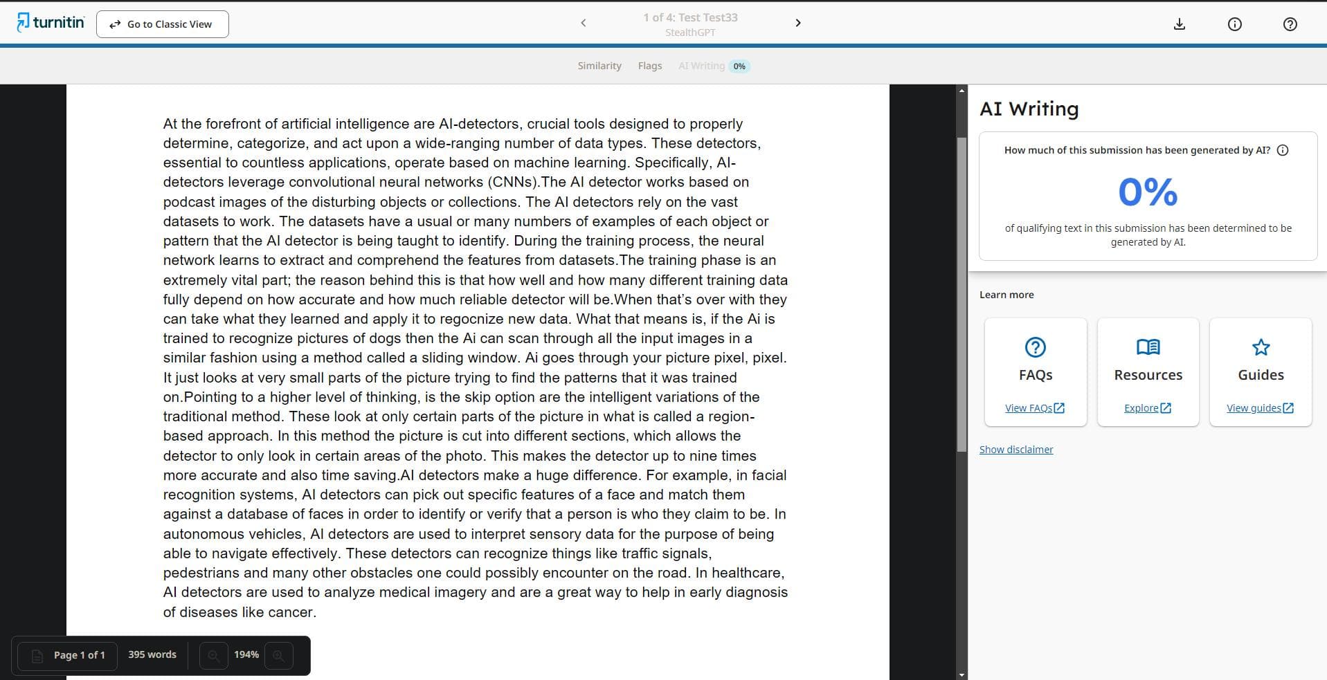 Now, let's compare StealthGPT against GPTZero, Originality, and TurnItIn. We'll take the same text from ChatGPT and convert it to StealthGPT beforehand.