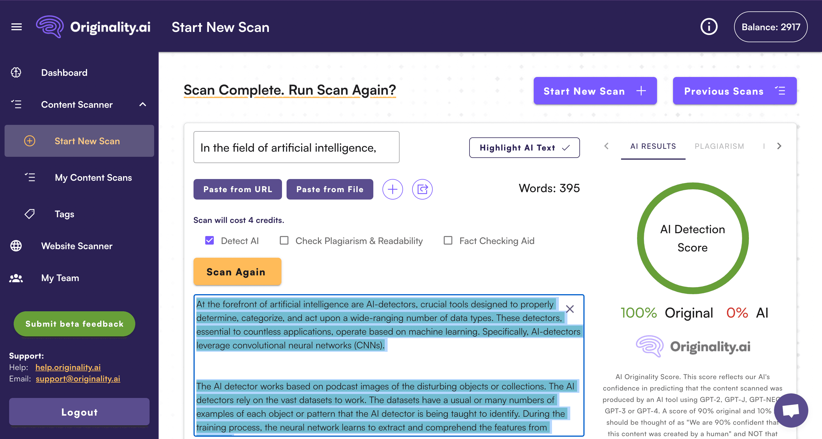 Popular AI detectors such as GPTZero, Originality, and TurnItIn will be used for this experiment. We will provide images showcasing how StealthGPT compares against WriteHuman.