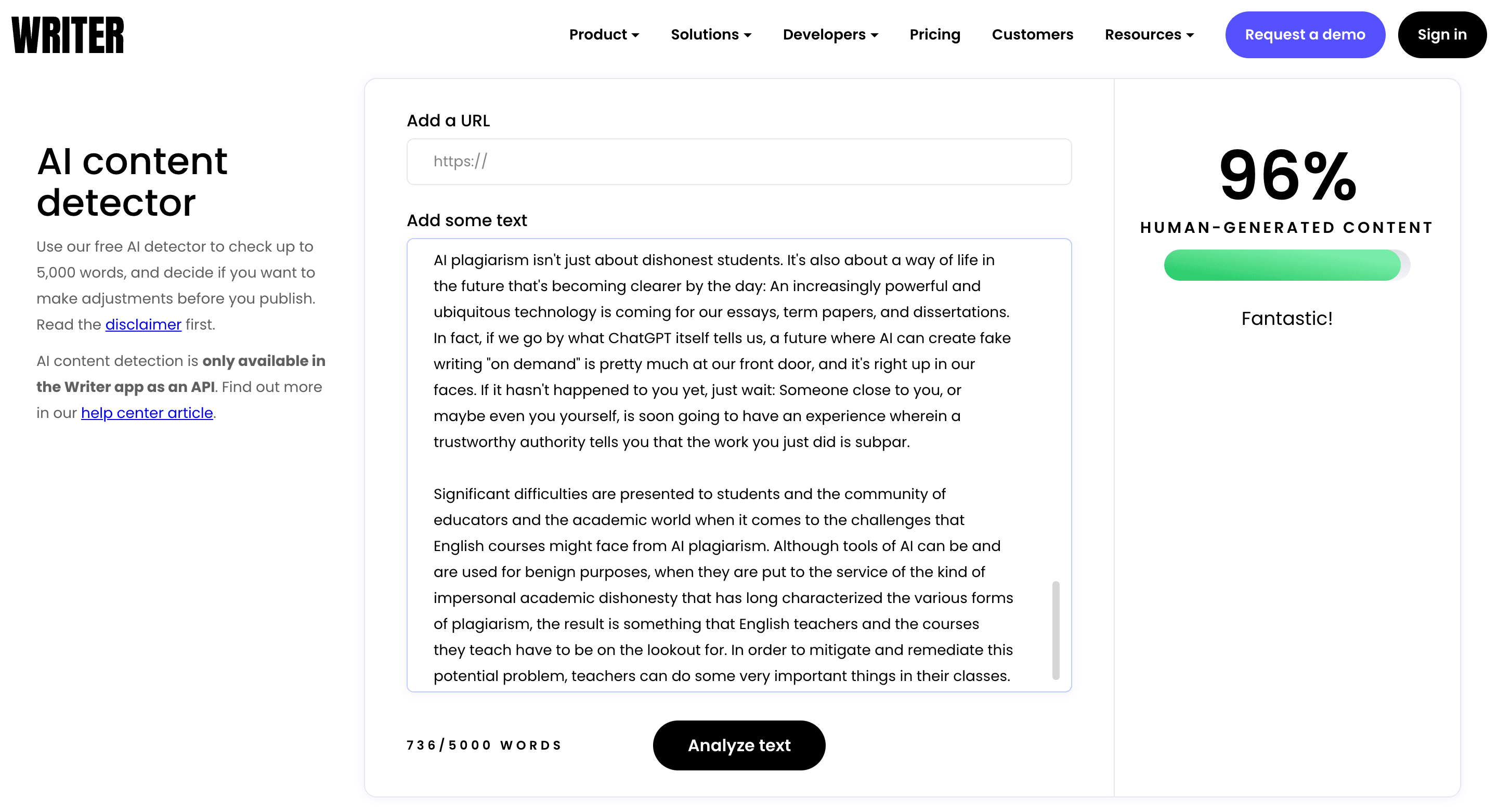 And Writer gave it a 96% Human Score. In the words of their own software, “Fantastic!”