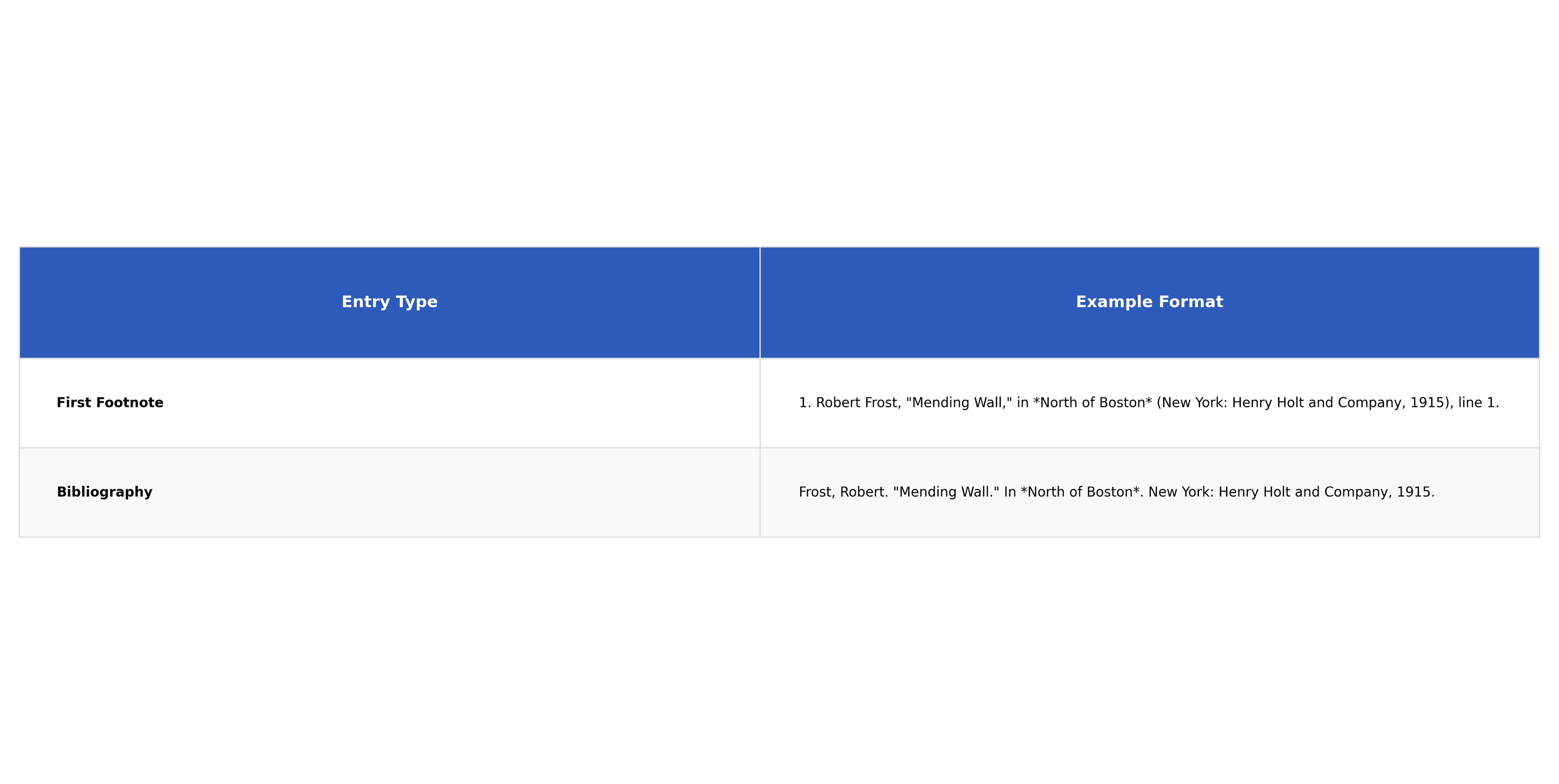 Juggling the tiny differences between a footnote and a bibliography entry can definitely trip you up. This table lays it all out, side-by-side, so you can see the direct comparison.