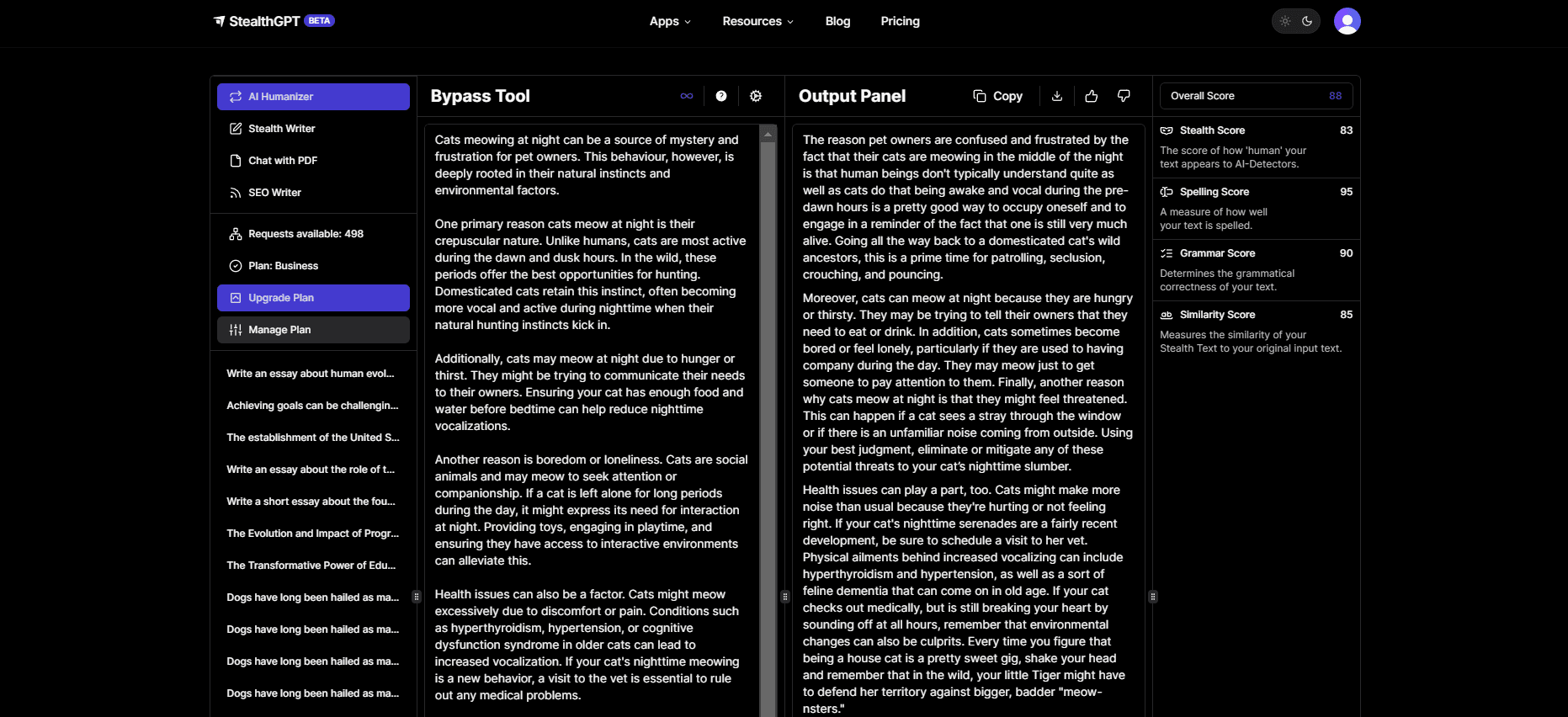 As its name implies, StealthGPT's AI Humanizer was meant to make your ChatGPT content undetectable and sound more human, making it coherent and readable so that it could be in terms of 0% plagiarism.