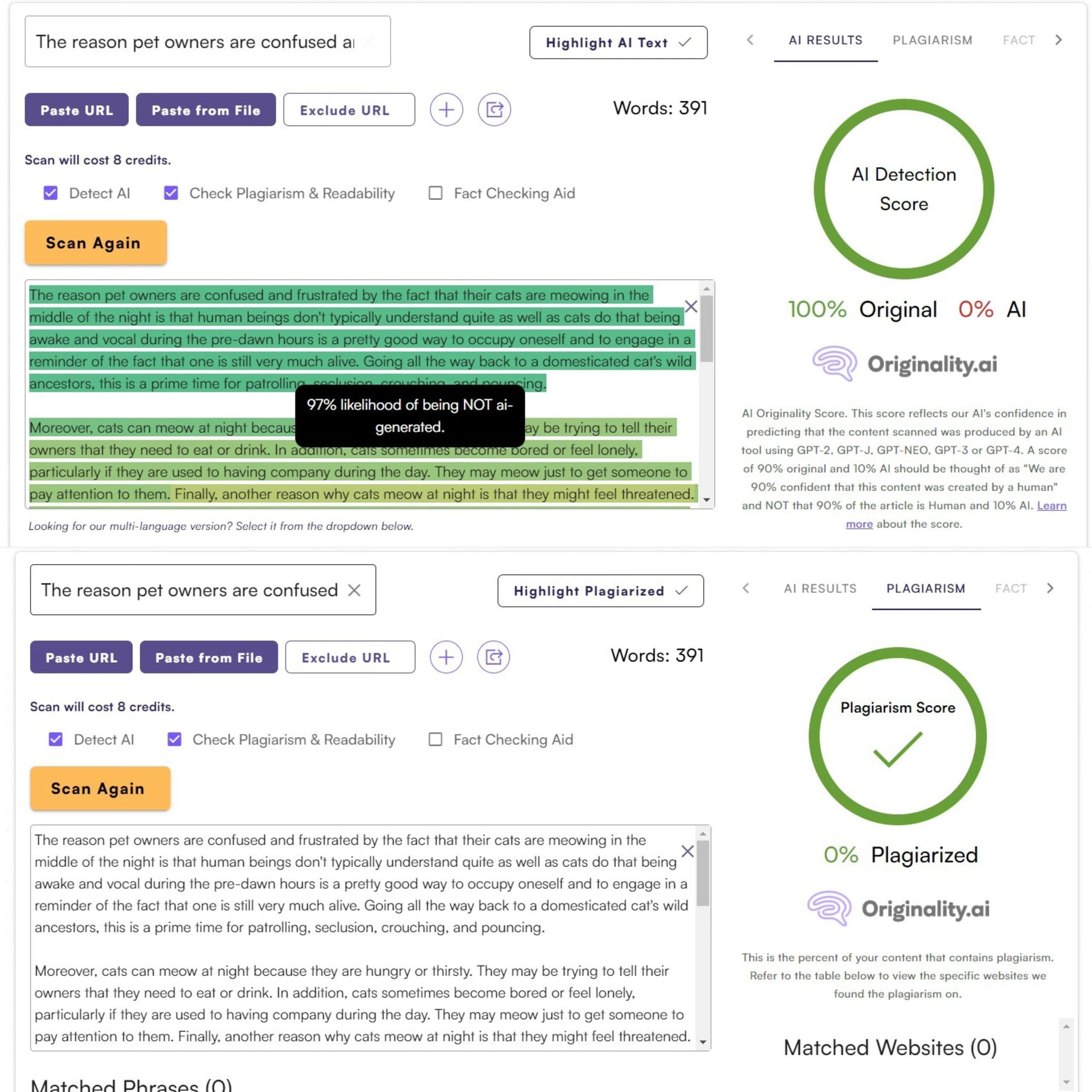 Each output generated will be different from the one you got yesterday, but each newly generated content will still be based on the vast pool of existing content due to the nature of its training data. Therefore, it’s not that much surprising that plagiarism detectors may find similarities to already published works and mark AI-generated content as plagiarised.