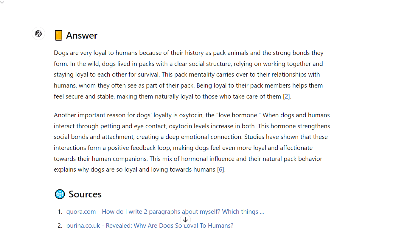 To get the output in the second screenshot, we asked ChatGPT to write two paragraphs explaining why dogs are loyal. Then, we prompted it to make the content easy to understand.