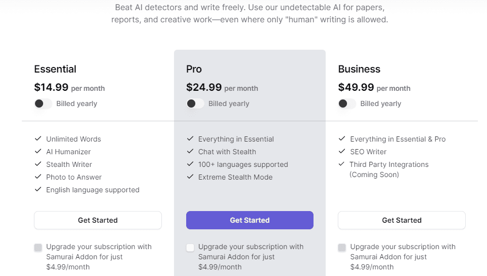 You can generate AI-text with any chatbot for us to rewrite or you can humanize straight from the source with StealthGPT’s Stealth Writer. It’s like ChatGPT with shades on, making whatever undetectable content you ask for.