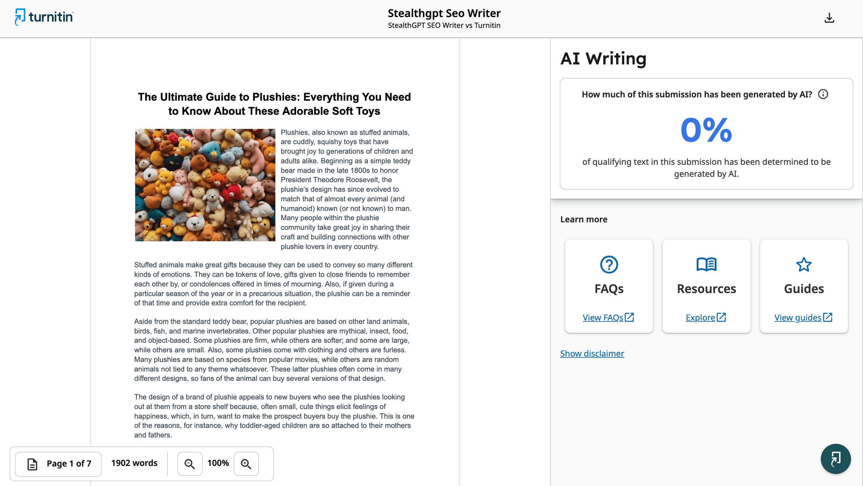 Here's what the blog looks like against Turnitin. As you can see, StealthGPT's SEO writer is completely undetectable against Turnitin. It is also more coherent, readable, and engaging for the readers.