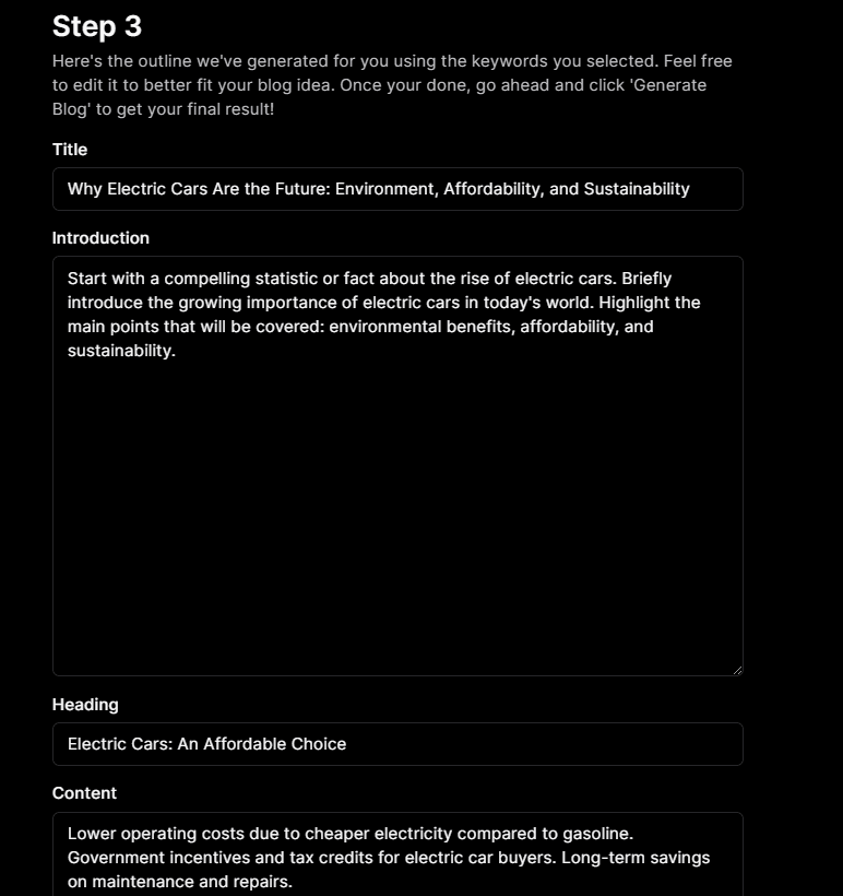 Tell SEO Writer in as much detail as you want what exactly your blog is going to be about. What information you want covered. And how to make it all fit together into a coherent narrative.