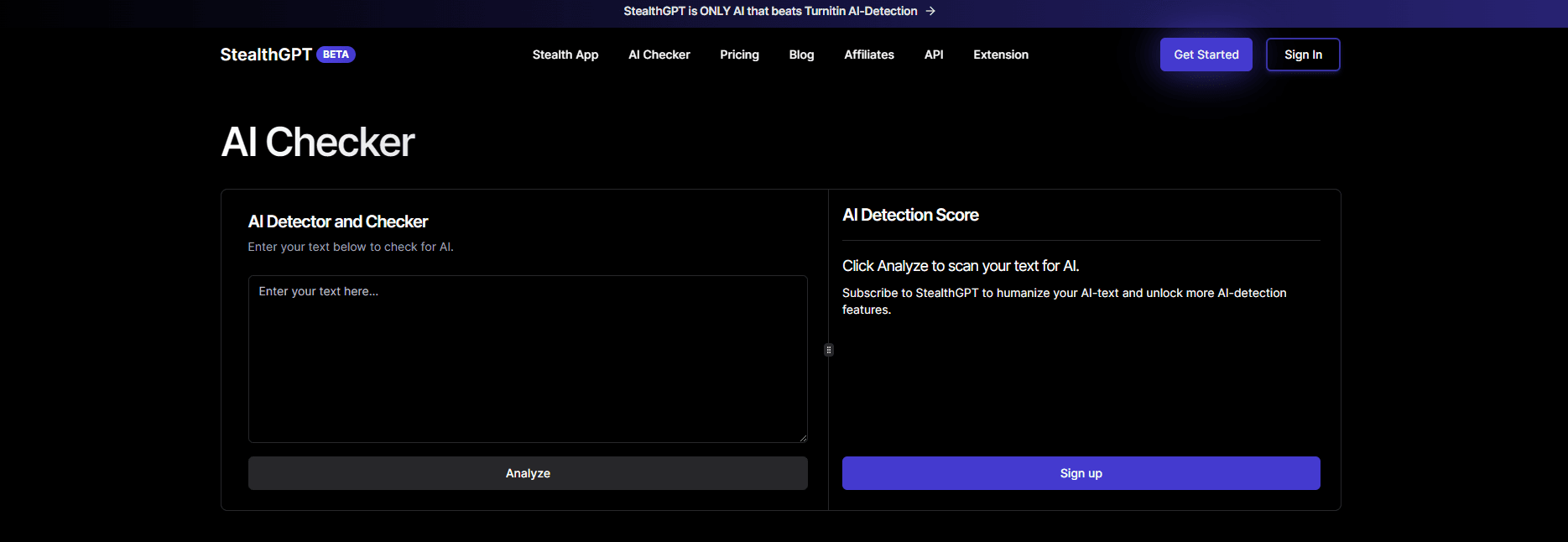 Using StealthGPT's AI Checker, you will be able to navigate the digital jungle as seamlessly as possible, ensuring the integrity of your content. We have designed a user-friendly interface that makes it easy to use instead of having to decipher technical jargon.