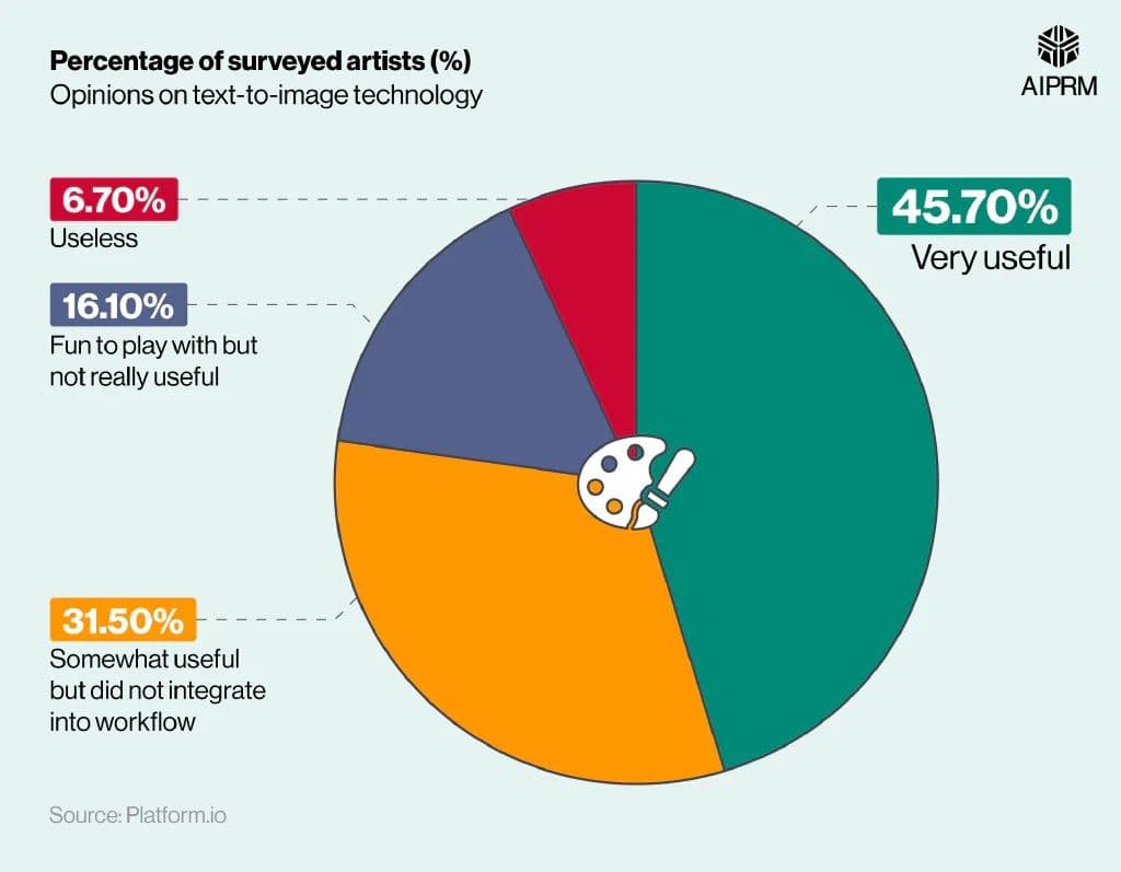 Advertising is another industry where the integration of art has only begun taking the jobs of graphic designers that could've been creating digital art. Survey Monkey now reports that 50% of marketers are using AI art.