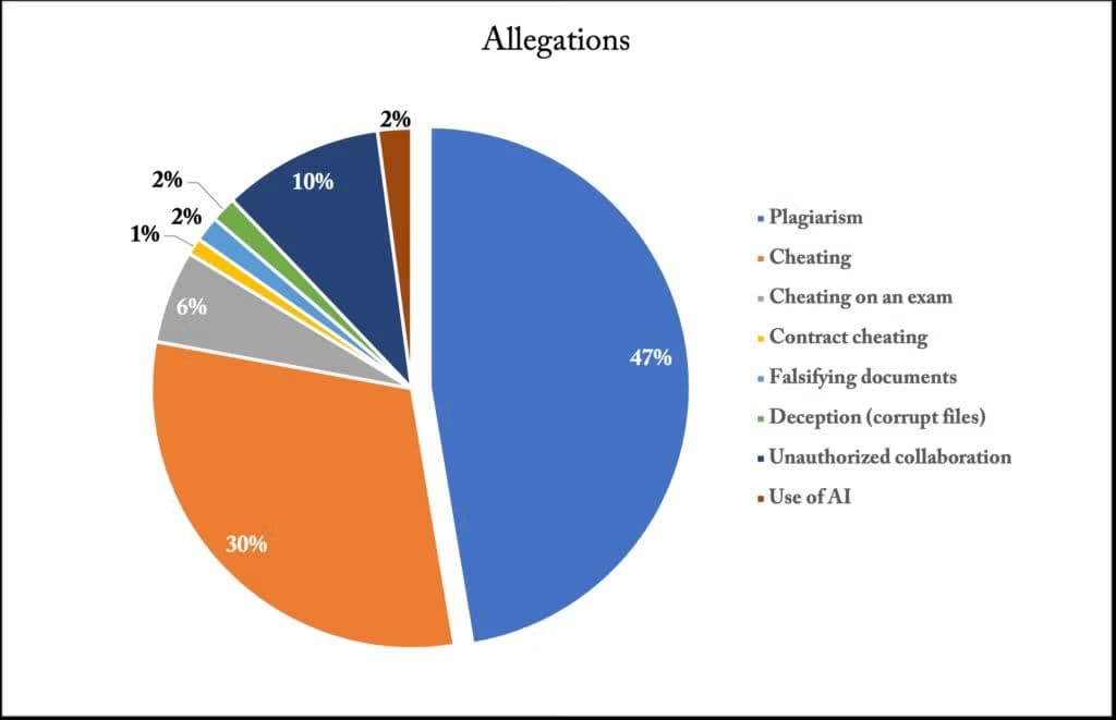 This academic misconduct breakdown shows how plagiarism constitutes the largest slice of violations at Georgetown university. It's safe to assume much of these violations are rooted in AI usage.