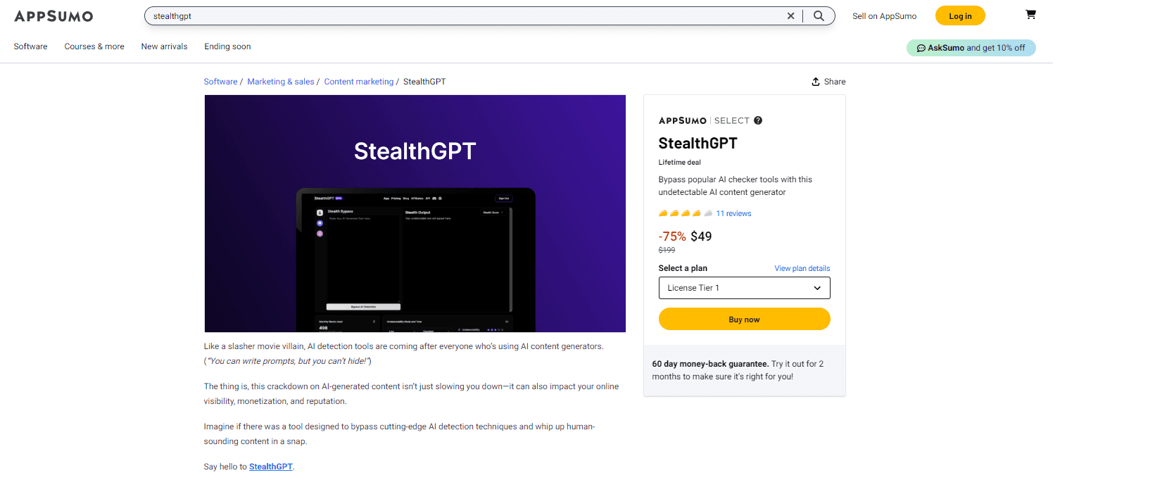 You can purchase the App Sumo <> StealthGPT Lifetime Deal here: StealthGPT for Life.
