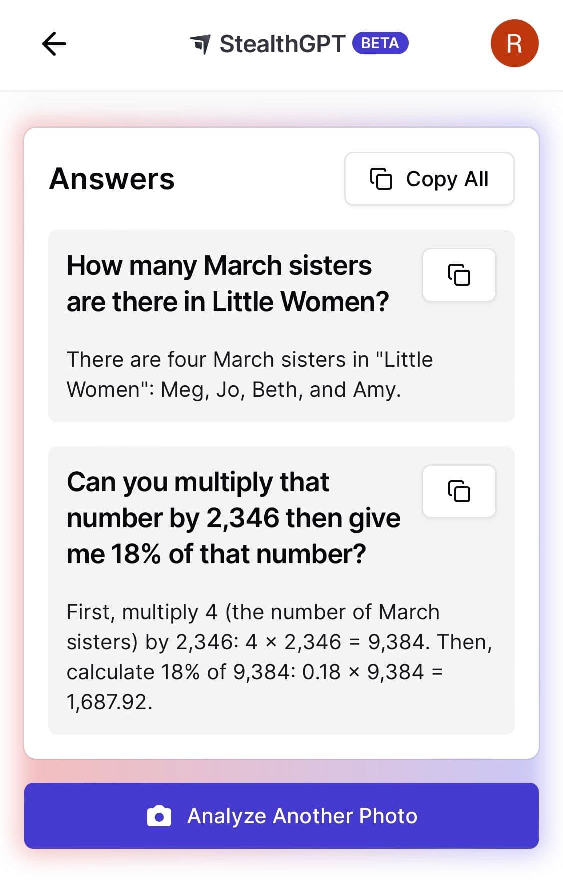 Yes. Photo to Answer is a feature you can only utilize with StealthGPT mobile so we can access your camera to take pictures of a document or your photo library so you can upload a picture of a document. Then, we can process that document and generate that sweet, undetectable AI-written content you need.