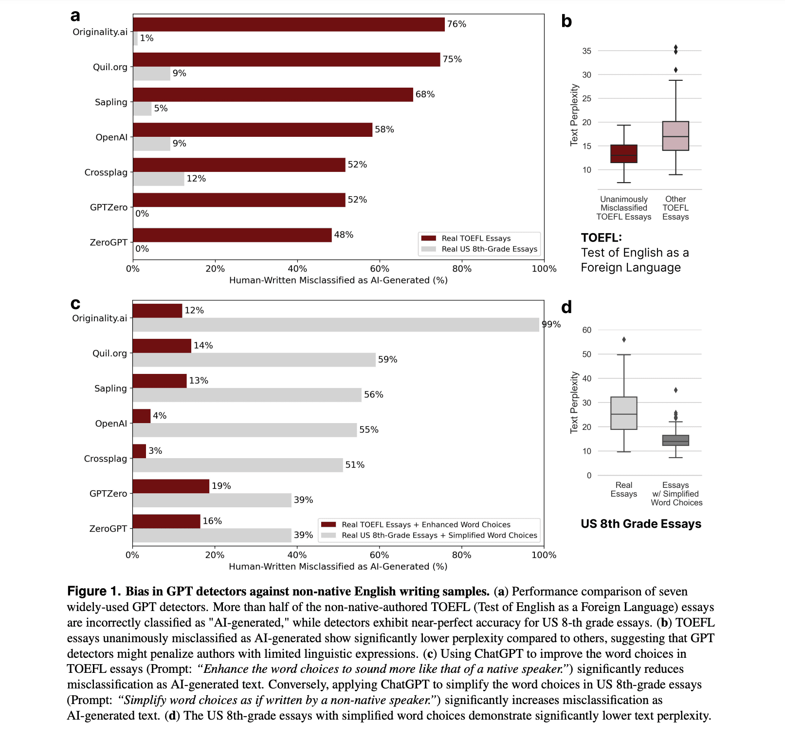 As you can see above, each detector tested showed bias against non-native English speakers.