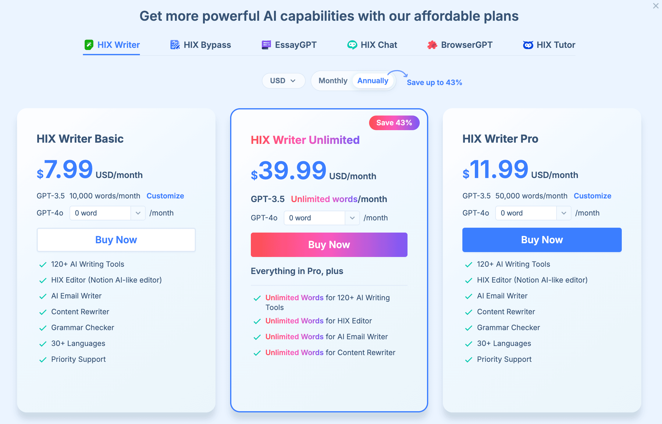 Hix has competitive pricing for casual users but a lackluster free trial program if you want to give the software a spin. With results that leave users high and dry against many detectors, professionals and academics should consider other options.