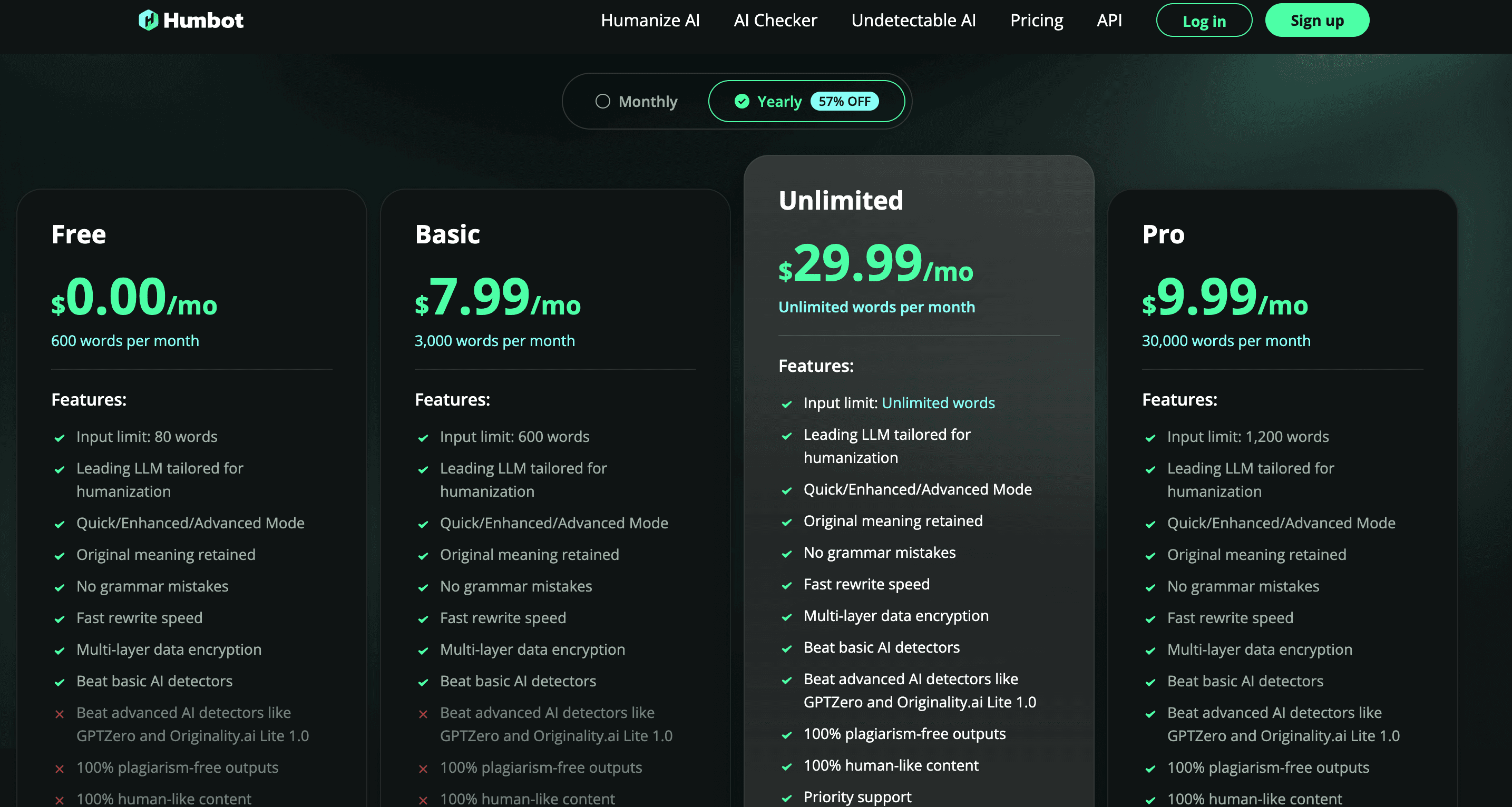 If the only detector a user wants their content to bypass is Turnitin, these are Humbot’s pricing options: