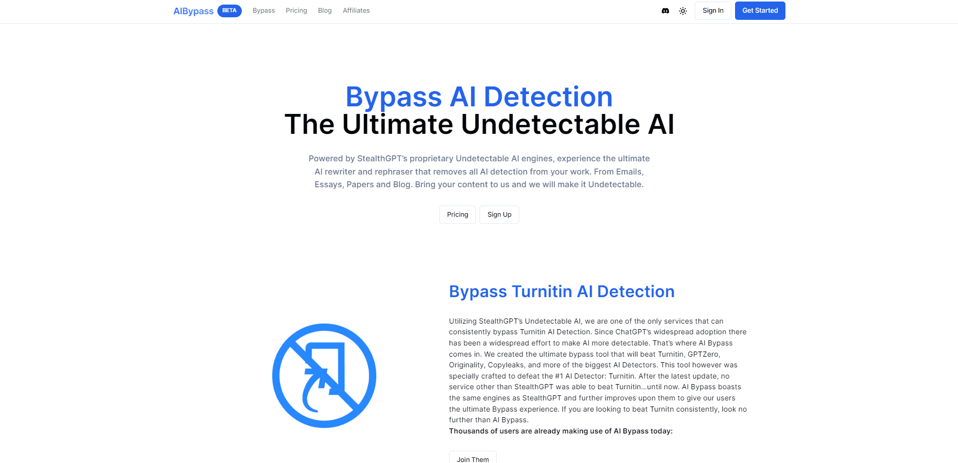 AIBypass is a cutting-edge platform designed for users to craft content that eludes AI detection. Utilizing sophisticated algorithms and unique technology, it modifies and reshapes text to render it undetectable by AI plagiarism checks and content analysis tools, such as Originality AI. Targeting a broad audience from students to content creators, AIBypass aims to protect the originality and privacy of their work, providing an advantage in digital content creation.