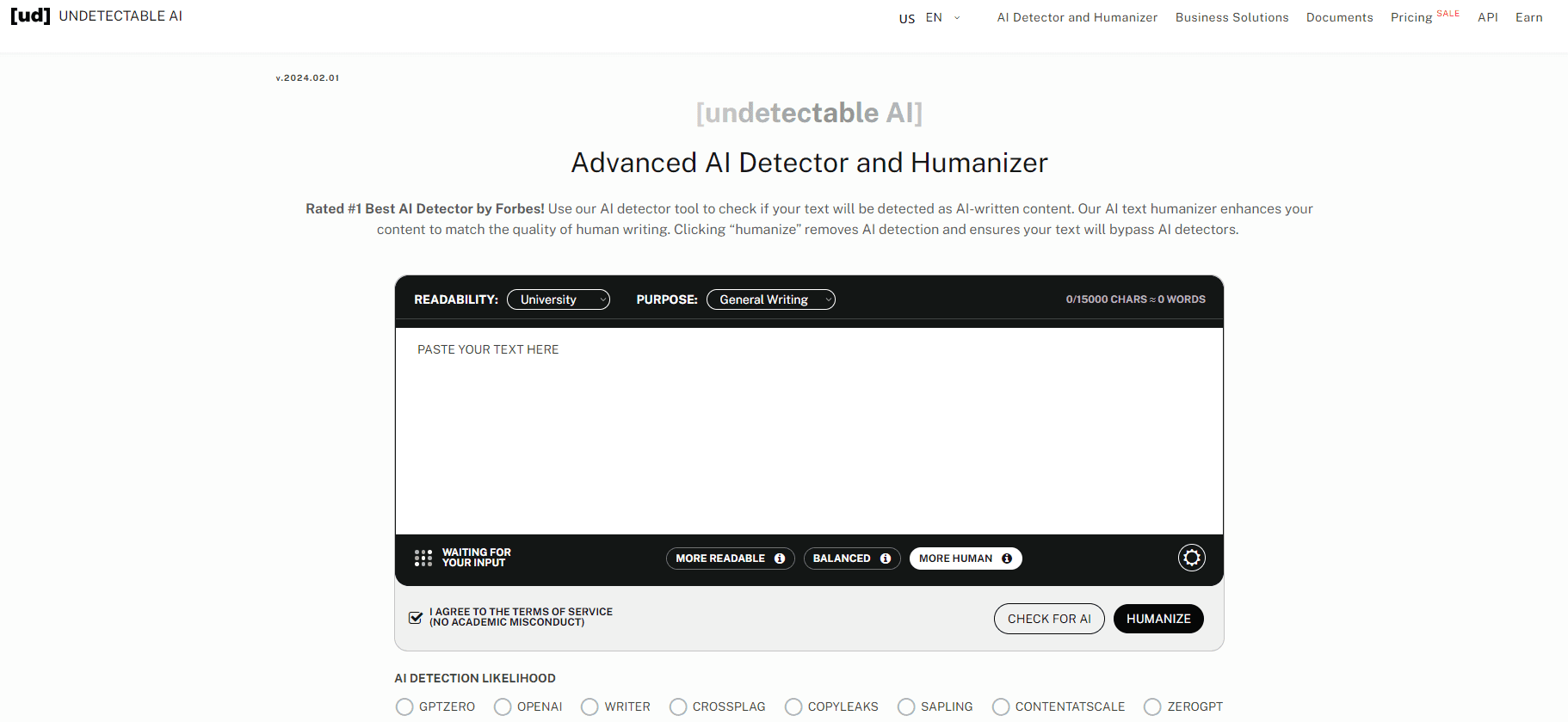 WriteHuman is touted as a sophisticated AI detection evasion tool, seamlessly compatible with plagiarism checkers such as Turnitin and GPTZero, among others. Its main role is to enhance users' online privacy and anonymity by optimizing their text to dodge AI tracking and sidestep AI detection mechanisms. This capability renders it an essential asset for individuals aiming to produce content that convincingly resembles human authorship, thereby eluding the AI algorithms deployed across numerous online platforms and services.