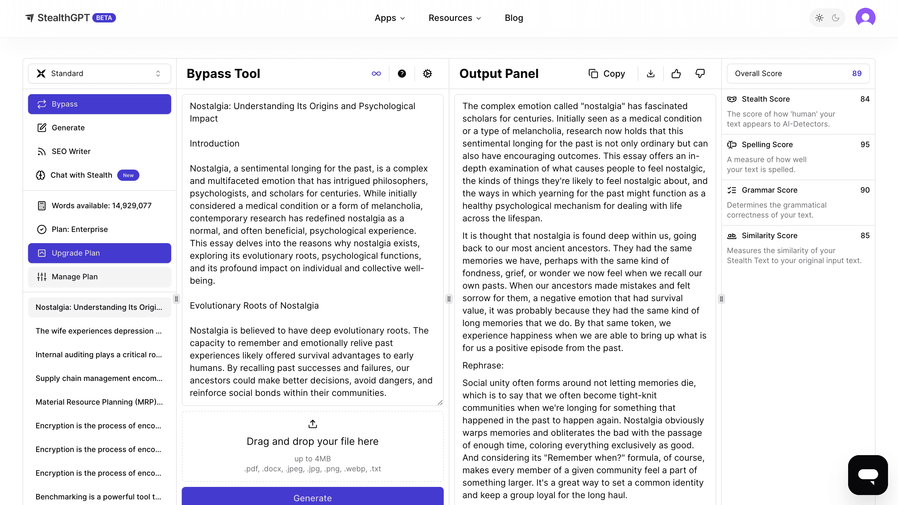 Next, we will use StealthGPT's bypass tool to turn the AI-generated ChatGPT texts into completely undetectable AI texts. Here's what it looks like: