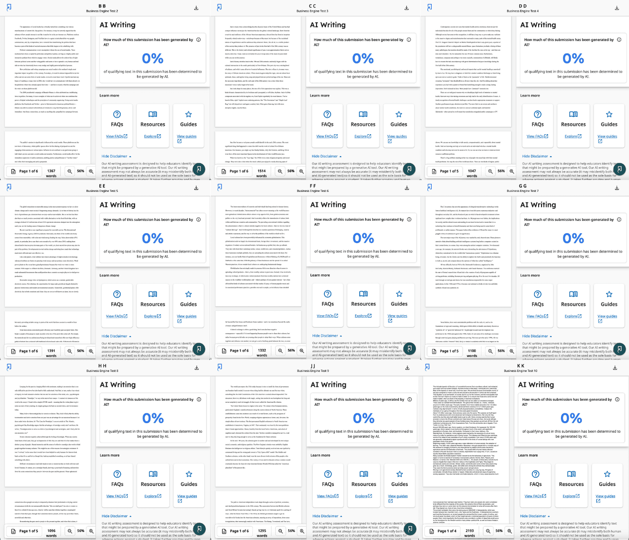 StealthGPT's business engine received a 100% human writing score across all 10 tests. This proves that the business engine is the most powerful engine that StealthGPT has to offer and can easily bypass Turnitin.