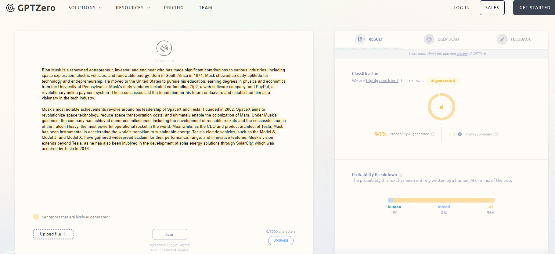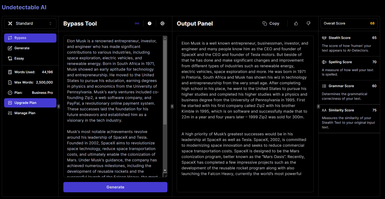 Now that we got our control text, let's get some text from StealthGPT, a true Undetectable AI and see how they do against the big AI detectors: