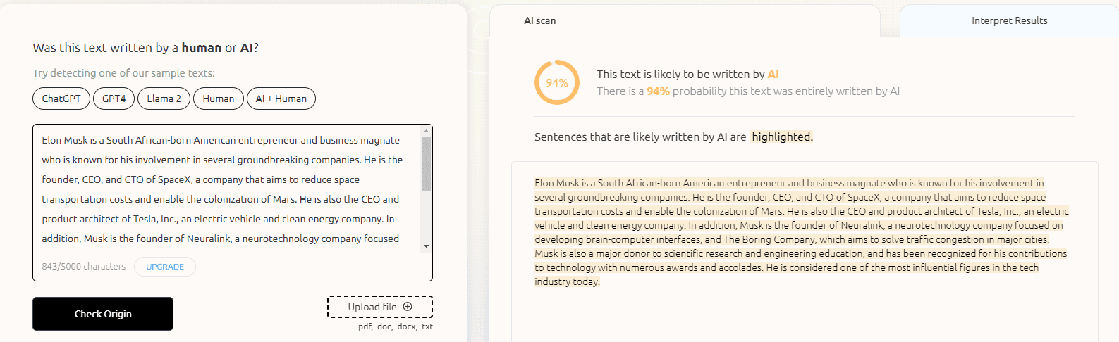 As you can see, the control text was transformed into undetectable content, easily bypassing GPTZero. But our test is not over, let's move to the next AI Detector.
