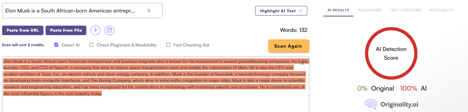 Now that we got our control text, let's get some text from StealthGPT, a true Undetectable AI and see how they do against the big AI detectors: