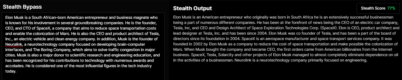 Let's see how the StealthGPT version of the Mixtral text does: