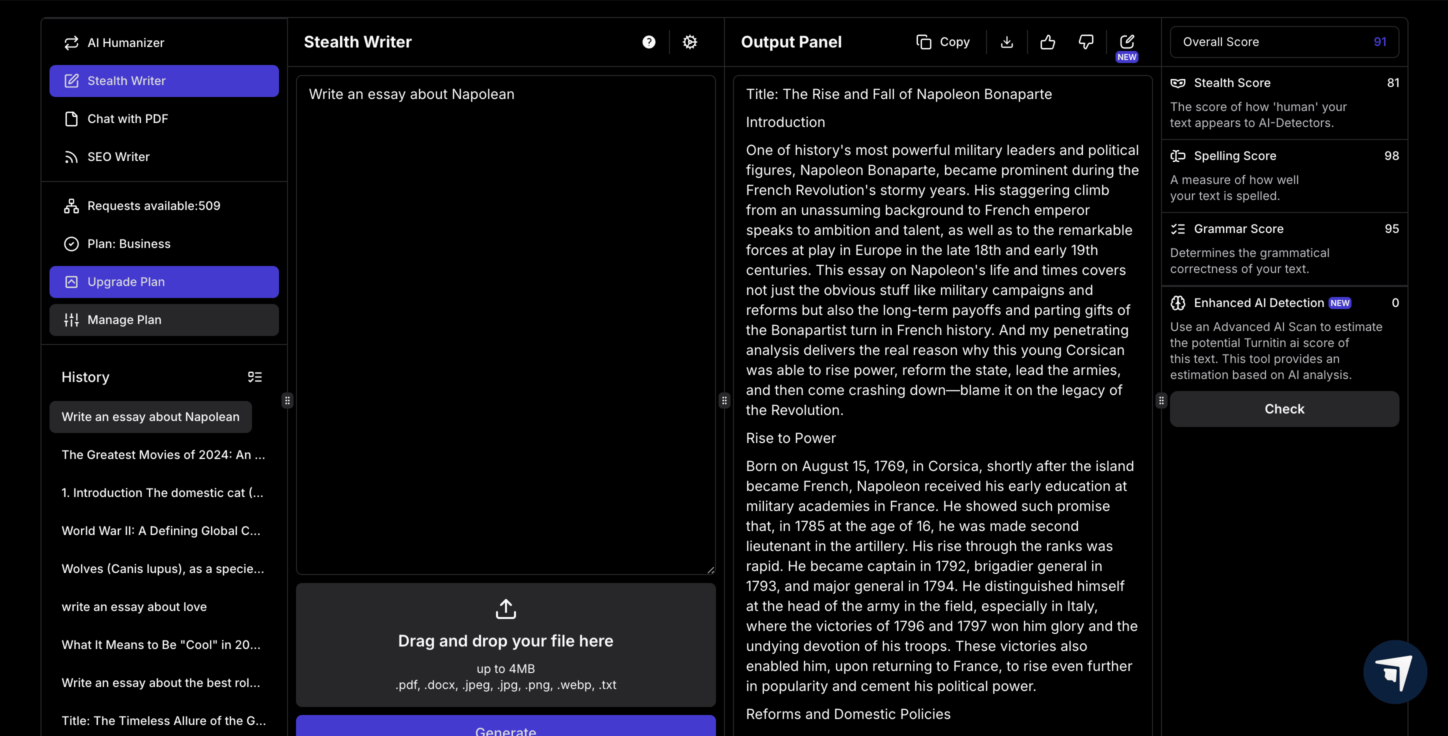 Once an undetectable AI essay is generated, users can then input it into an AI detector to get a score that will help them determine help if their work is ready for submission.