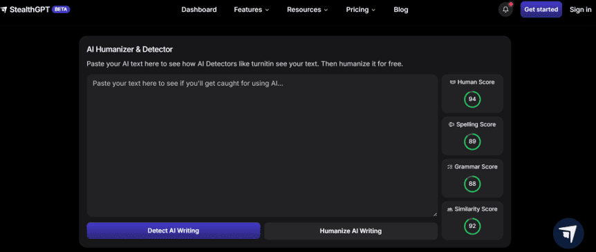 The second tool on our list is Stealthgpt.ai. It is a two-in-one tool that lets you both detect the AI-written text and also make it humanized. Know that this is a premium tool and requires a subscription. Yet the free plan is also available but with limited access.