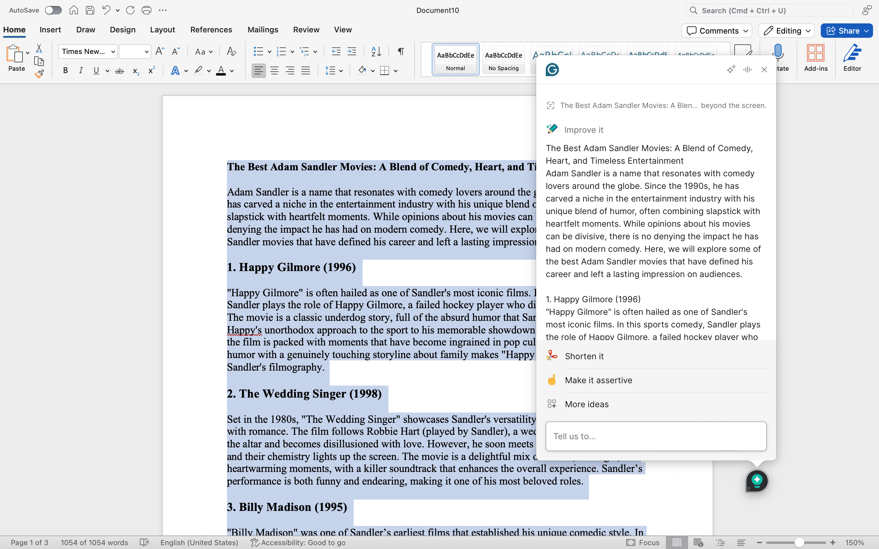 The Grammarly treatment allows me to take many suggestions with what to do with the text from rewording a few sentences to generating an entirely rephrased essay.